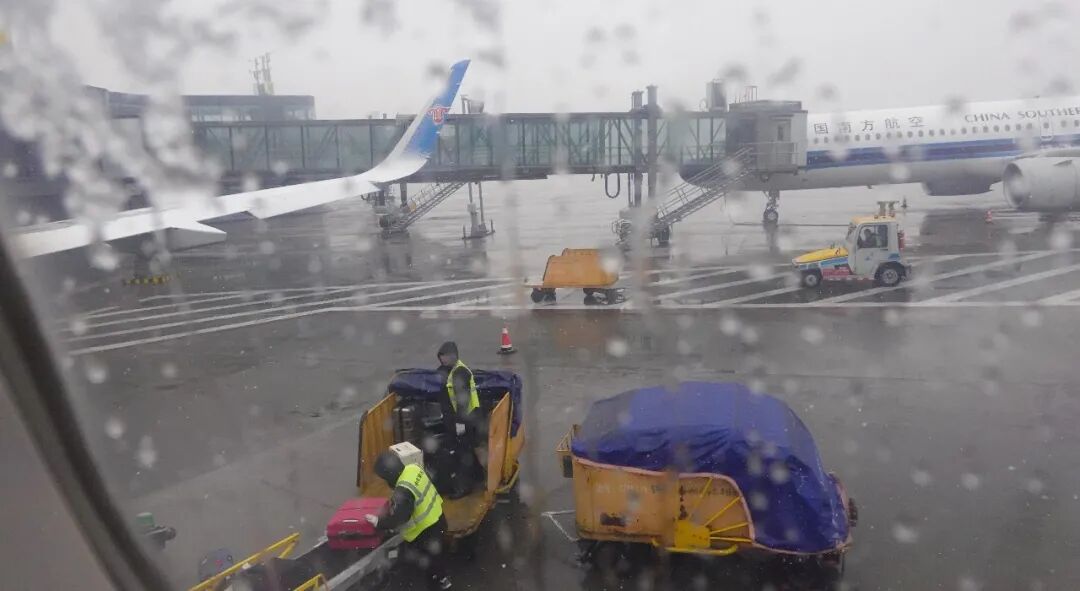 3月2日,北京大兴国际机场航站楼中国园,等待登机的旅客在欣赏雪景。停机坪上,