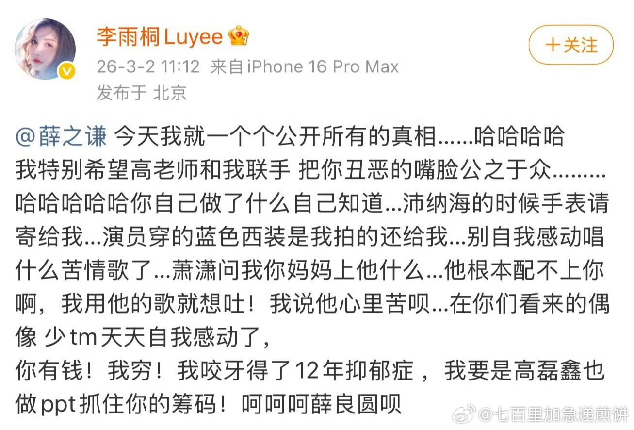 李雨桐喊话薛之谦 李雨桐喊话薛之谦