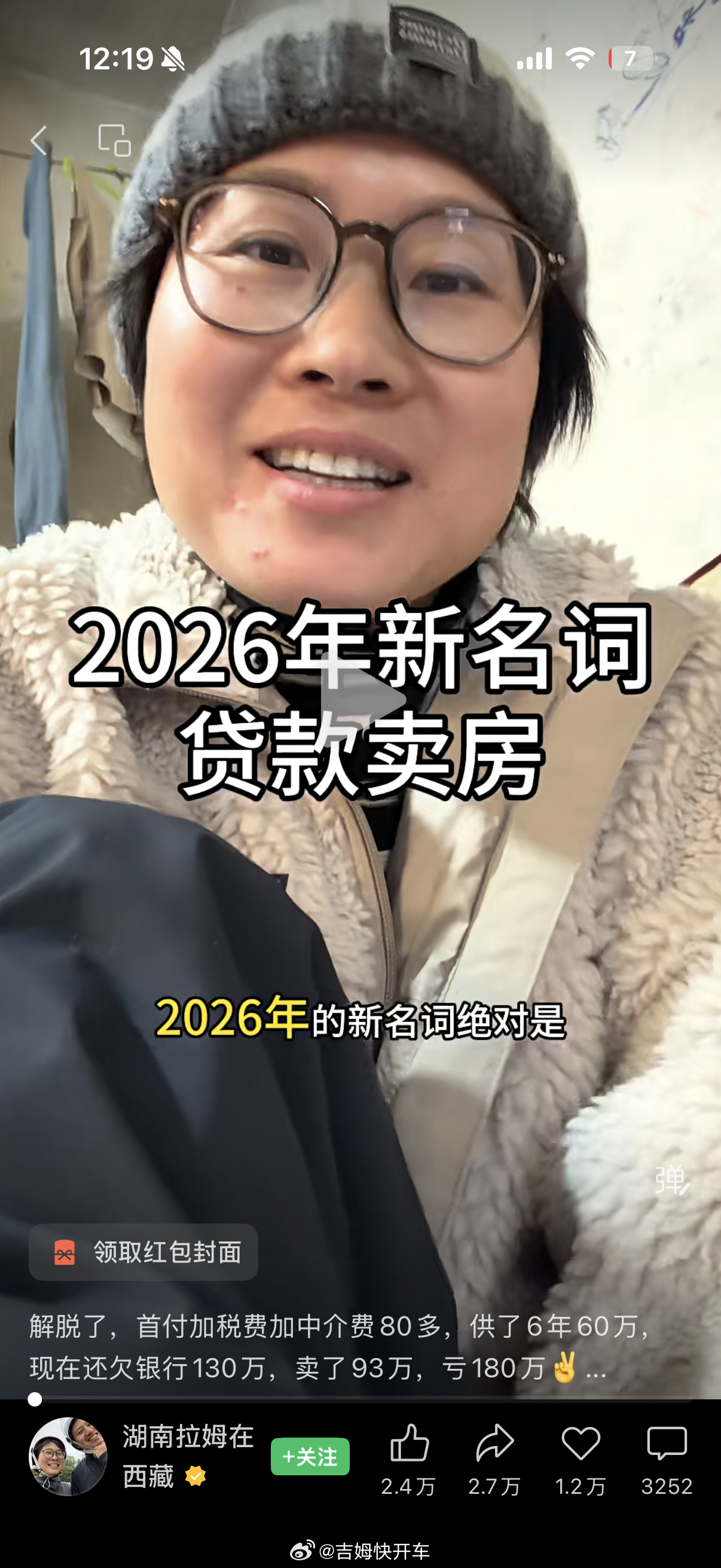 刚刷到一个词:贷款卖房。就是说现在房价卖的价格,都不够还贷款了。而且房价还一直在往下跌,再不卖只会亏更多,只能通过贷款先把贷款还了,然后把房卖出去。问了下做房产的朋友,这种情况现在其实还挺多的。 看到一个评论,越努力混的越差,还有说曾经那些积极向上贷款买房的人被拖垮了,同时也成就了一批躺平的年轻人。