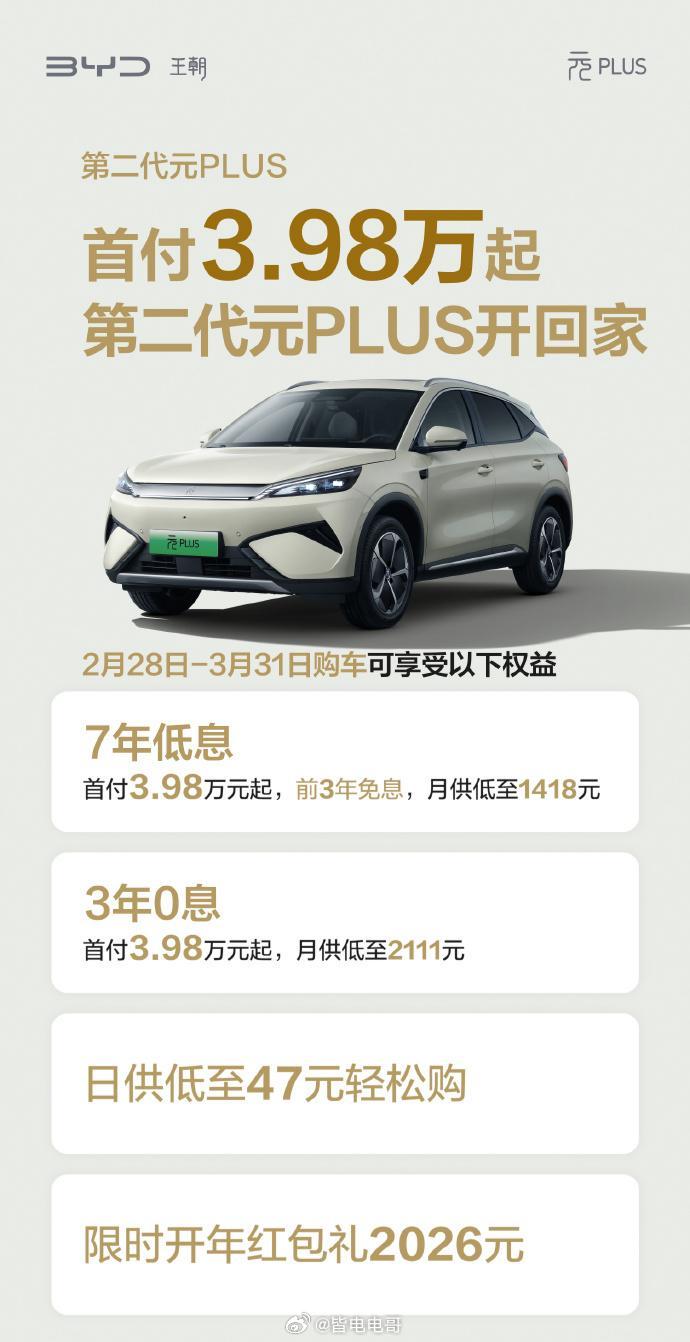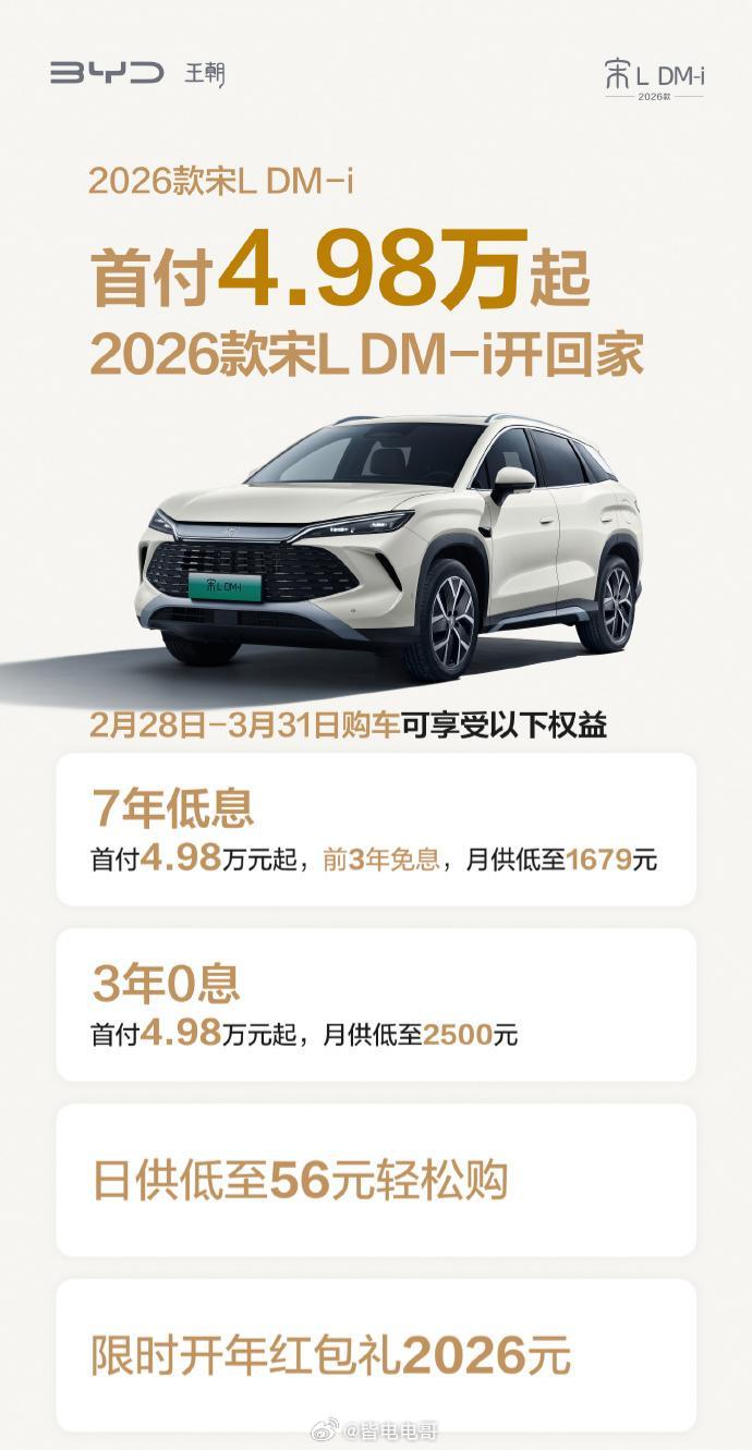比亚迪今天也推出了不少车型的金融政策2026款宋Pro DM-i、2026款宋L DM-i、宋L EV智驾版、第二代元PLUS