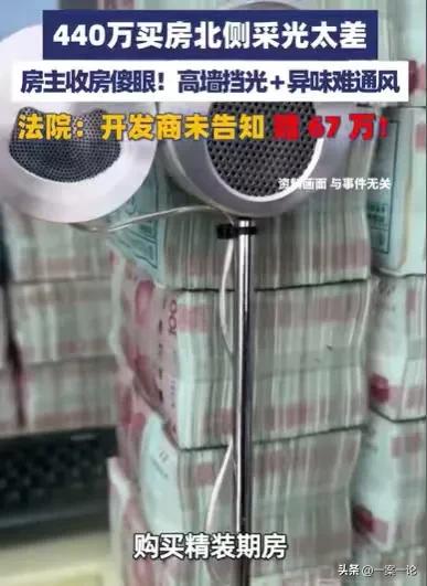 江苏南京,女子花了440万余元买了精品期房,期待了3年,终于收房了,这时却发现,房子的北侧采光非常差,还有天井镂空井盖,异味难闻,根本不能开窗,花了那么多钱,买到这样的房子,她心里很不舒服,就起诉开发商,结果令人大快人心! 钟女士在2021年,就看中了一套精品期房,那里的位置相当好,不但交通方便,周围的设施也很完善,主要是那里的环境很优美,当时她就毫不犹豫地掏了440多万,买下了这套房子。 因为是期房,她需要等待,需要等几年,才能收房,入住新房。 买房之后,她就一直等待着,一等就等了三年,终于收房了。 可她来到房子跟前的那一刻,眼前的一幕,让她震惊了。 在她的想象中,440多万买的房子,并且是精品的期房,里面装修好,应该是明亮宽敞,看起来非常舒服的。 可眼前的一幕,房屋的北侧近两米处,有一堵约5米高的入户大厅墙,挡住了她房子的光线,房子白天都是暗呼呼的,需要开灯才能正常生活。 看到新买的房子,还是花了440多万买的房子,里面白天居然都没有充足的光线,在这里生活实在太压抑了。 看着光线这么差的房子,一股难闻的异味吹进屋子里,让她皱起了眉头,她又观察了一下。 结果发现北侧天井镂空井盖,那里散发的异味吹进她的房子,如果面向北侧的那扇窗不关住,她家的房子会充满异味,而且那里会滋生蚊虫,不关窗,蚊虫飞进来,生活也会深受影响。 朱女士看到这糟糕的事情,原本满心期待,收房之后,收拾一下,就搬进来。 可如今,这么糟糕的环境,让她根本不想入住新房。 她感觉真的太糟糕了,更让她恼怒的是,当初买房的时候,开发商都是说得好好的,签合同的时候更是没有任何问题。 对于这两个不利的因素,他们是只口不提,钟女士以为自己花了这么多钱,肯定是能买到一套好的房子,她从来没有想过,买个新房, 大白天还要开灯的。 她深深地感受到自己被欺骗了,同时有两名业主也和她有同样的烦恼,他们也是被欺骗了,他们在买房的时候和签合同的时候,工作人员同样没有把不利因素告诉他们。 看着这样的房子,钟女士哪里有心思入住,她和这两名业主将开发商告上了法庭,要求赔偿。 买到这样的房子,确实挺糟糕的,440多万房子不便宜,如果不利的因素严重影响生活,确实应该追究到底。 如果当时工作人员确实没有把这些不利因素告诉钟女士,导致钟女士不能正确认知,不能根据自己的真实意思买房子,那么钟女士当然可以起诉开发商。 《民法典》第143条规定:具备下列条件的民事法律行为有效: (一)行为人具有相应的民事行为能力; (二)意思表示真实; (三)不违反法律、行政法规的强制规定,不违背公序良俗。 正是因为工作人员的隐瞒,导致朱女士没有按照自己的真实意思买房,所以开发商是有过错的。 《民法典》第1165条规定:行为人因过错侵害他人民事权益造成损害的,应当承担侵权责任。 既然他们有过错,就应当承担相应的过错责任,法院判决开发商需要赔偿67万余元给钟女士,当然另外两位业主也获得了相应的赔偿。 那么你对钟女士买房经历有何看法呢?