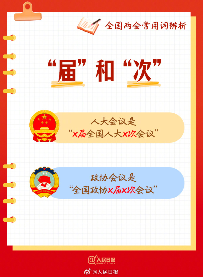 【转存学习!#全国两会常用词#,你用对了吗?】①代表委员“共商国是”,不能写为“共商国事”;②“届”和“次”位置有讲究:人大是“x届全国人大x次会议”,政协是“全国政协x届x次会议”;③“议案”和“提案”不能混用……收藏这组#两会学习笔记#↓↓共同期待2026年#全国两会#! (人民日报)