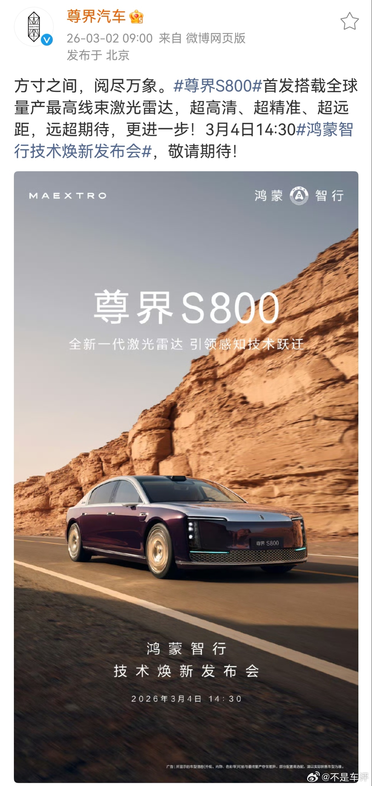 难道说 L3 终于要来了?尊界S800官宣将搭载全新一代激光雷达,根据独家爆料,远超500线,感知能力进一步提升。