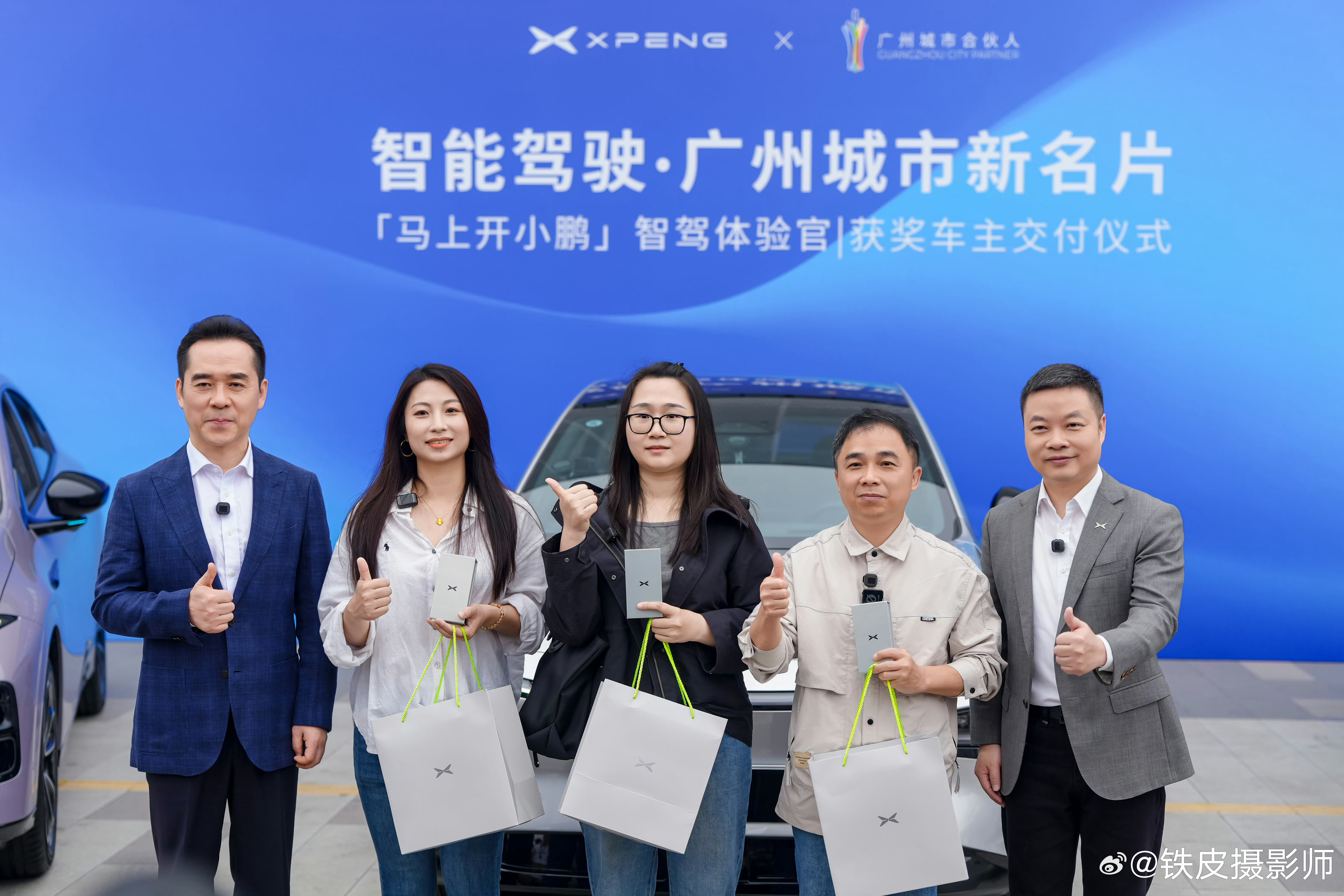 智能驾驶是广州城市新名片 广州市政府副秘书长朱小燚、小鹏汽车董事长 CEO 何小鹏在现场为首批广州智驾体验官正式交付新车钥匙。