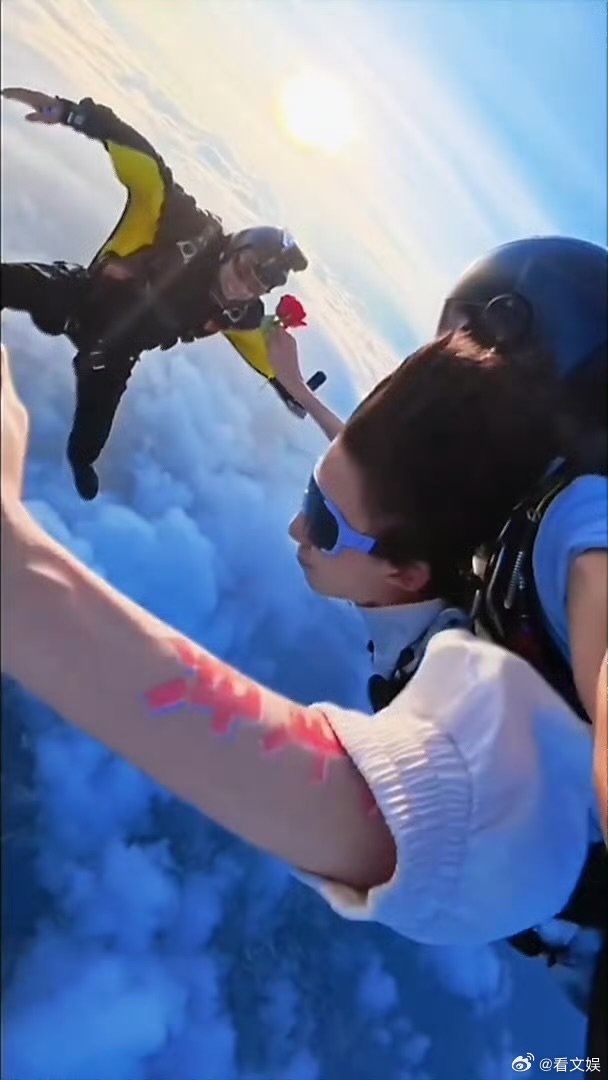 杨博文跳伞时手上画了粉色的冲冲冲杨博文粉色的冲冲冲 粉色的冲冲冲