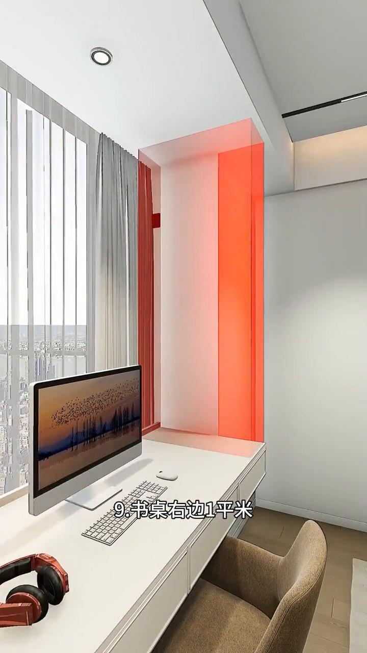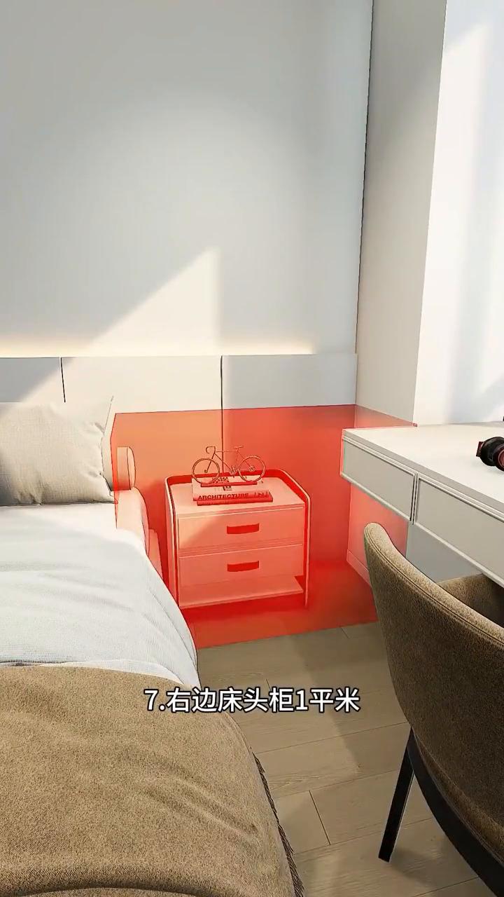 ·1.卧室门后1平米,以前浪费还积灰,不如设计洞洞板,外套包包都能挂。 ·2.衣柜侧边1平米,先预留灯具开关,再定制到顶薄柜,收纳珍藏的包包,关上柜门防灰尘。 ·3.床头柜1平米,挡住柜门难打开,不如不买床头柜,定制转角矮柜,收纳不常用杂物,上方做悬空衣柜,台面是宽敞的床头柜。 ·4.卧室床头1平米,不做厚重的床靠,改做半墙木饰面,节省床头空间,床尾过道也更宽。 ·5.卧室窗帘1平米,不贴内墙安装,而是窗边预留插座,安装电机,飘窗里装电动窗帘,实用省空间。 ·6.卧室飘窗1平米,延伸做张大书桌,多出一个学习区。 ·7.右边床头柜1平米,不买成品床头柜,延伸悬空梳妆台,方便老婆化妆打扮。 ·8.台面上方1平米,设计到顶梳妆柜,瓶瓶罐罐好分类,下方预留插座,方便使用吹风机。 ·9.书桌右边1平米,设计一组小书柜,学习资料顺手拿。 ·1.墙角做组合衣柜,布局以挂衣区为主,薄柜展示摆件手办。 ·2.做假墙隔断,搭配洞洞板,随手挂包包,柜门搭配全身镜,关上就是独立衣帽间。 ·3.靠墙放排骨架床,床边满做护墙板,防潮又耐脏。 ·4.床下两排大抽屉,大件杂物随便放,中间用卡扣连接,抽屉才能完全拉出来。 ·5.床尾做一排矮柜,放各种睡前读物,台面方便放水杯。 ·6.另一侧先做书柜,延伸悬空大书桌,学习看书有采光,书籍资料也顺手拿。 ·1.门边先做高柜,下方收纳鞋子,上方收纳鞋盒,中间放摆件包包,关上柜门不落灰。 ·2.上方柜门下挂1公分,开关更轻松,下方柜门做暗挖拉手,不仅美观耐看,还方便开关抽屉。 ·3.底部预留感应灯,常穿鞋子放底下。 ·4.连接做高柜,收纳长筒靴和包包礼品盒,柜门同样做暗挖拉手,不挂衣服不磕手。 ·5.侧边薄柜做到顶,下方雨伞竖着挂,上方挂小件工具,收纳更整齐。 ·6.对面洞洞板做造型,回家随手挂衣帽,下方折叠换鞋凳,坐着换鞋更轻松。
