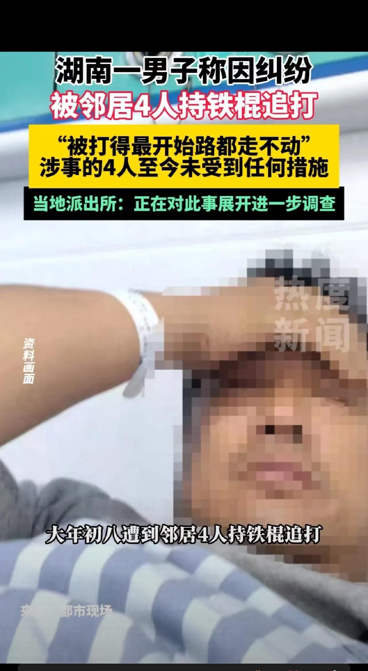 这次占便宜遇到狠人了!”湖南永州,男子看邻居外出打工,院子一直空着,便把杂物堆在邻居院子里,结果邻居突然回来,说要入住。双方发生争吵,男子称邻居4人持铁棍追打!网友:我怎么觉得姓你被打活该呢? 蒋先生夫妻俩常年在外打工,老家的院子空置了大半年,院里长满荒草,一直没人打理。隔壁的李先生瞅准了这个机会,心里打起了小算盘:反正邻居不在家,院子空着也是浪费,不如拿来堆自家杂物! 说干就干,李先生没跟蒋家打一声招呼,更没征得同意,大摇大摆地把家里的钢圈、废旧密封桶、各种杂七杂八的破烂,全搬进了蒋家院子。没过多久,整洁的院落就被堆成了臭气熏天的垃圾场,李先生却心安理得,觉得都是乡里乡亲,这点小事不值一提。 可他万万没想到,大年初八这天,蒋先生一家突然提前返程! 推开门的瞬间,蒋先生直接气到浑身发抖:自家院子被塞得水泄不通,杂物堆得比人还高,连个落脚的地方都没有,一股霉味直冲鼻腔。 找到李先生对质时,更让人火大的一幕出现了!李先生不仅没有半分愧疚,反而吊儿郎当地说:“不就放了点东西吗?你们回来了我搬走就是,至于这么大惊小怪?” 这句话直接点燃了蒋家人的怒火!这哪里是临时放东西,分明是明目张胆侵占私人领地,是骑在头上欺负人!情绪彻底失控的蒋家4人,抄起手边的铁棍、钢管,朝着李先生就追了过去。 混乱中,李先生被打得遍体鳞伤,惨叫着求饶,最后被紧急送往医院。事后他立马报警,委屈巴巴地称自己无辜被打,要求蒋家承担法律责任,可网友们的评论,直接让他彻底破防! ✅网友热评炸锅: “太解气了!这种爱占便宜没底线的人,就该狠狠治!未经允许占人院子,还这么横,被打一点不冤!” “纯纯流氓逻辑!你家没人我就能随便进?你车停路边我就能随便开?丝毫不尊重别人的财产,纯属自作自受!” “虽然看着解气,但蒋家也太冲动了!本来占尽道理,把人打伤就成故意伤害了,赔钱又担责,太不值了!” “农村这种贪小便宜的人太多了,总觉得别人不用的东西就是自己的,连最基本的边界感都没有!” 👉我的看法: 说实话,这事看完真是又痛快又惋惜! 李先生纯纯是贪小便宜吃大亏!私人院子再空,也是别人的合法财产,不是公共储物间,不打招呼就占用,本身就是侵权行为。被主人发现后,还态度嚣张、毫无歉意,彻底触碰了别人的底线,网友说他活该,真的一点没毛病! 但蒋家人的做法,也实在太冲动了!明明是百分百的受害者,完全可以报警、找村委会调解,让李先生清理杂物、公开道歉,妥妥的占理一方。结果一顿情绪上头的暴打,直接触碰了法律红线,轻则赔偿高额医药费,重则涉嫌故意伤害罪,硬生生把自己从“有理”变成了“违法”,得不偿失! 这事儿给所有人敲了警钟: ✅ 做人别太自私,尊重他人的边界和财产,是最基本的教养,别把占便宜当理所应当! ✅ 维权千万别用暴力,以暴制暴只会两败俱伤,法治社会,用合法方式解决问题,才是最聪明的选择! 大家觉得,这种私自霸占邻居院子的人,到底该不该打?评论区聊聊你的看法!