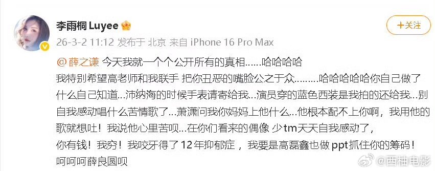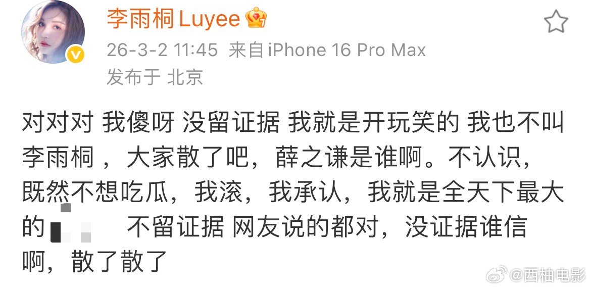 李雨桐回复:“嗯对”。李雨桐喊话薛之谦
