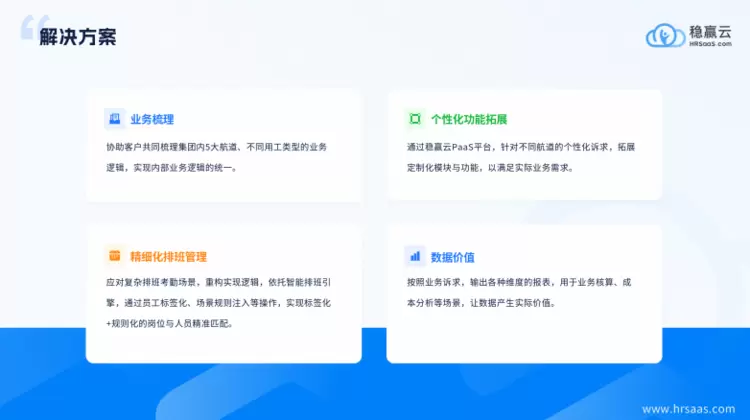 在这场本土化数字转型的浪潮中,作为国内HR数字化领域的代表性力量,稳赢云正是凭借对中大型企业管理逻辑的深刻洞察,构建了“产品+交付”的双轮驱动体系。