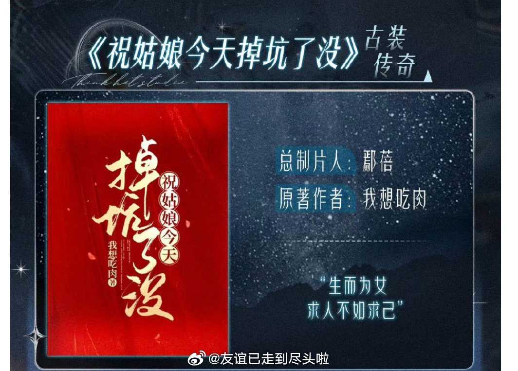 🍉:优酷超级S+《祝姑娘今天掉坑了没》接触赵露思,大女主+无cp,女主女扮男装