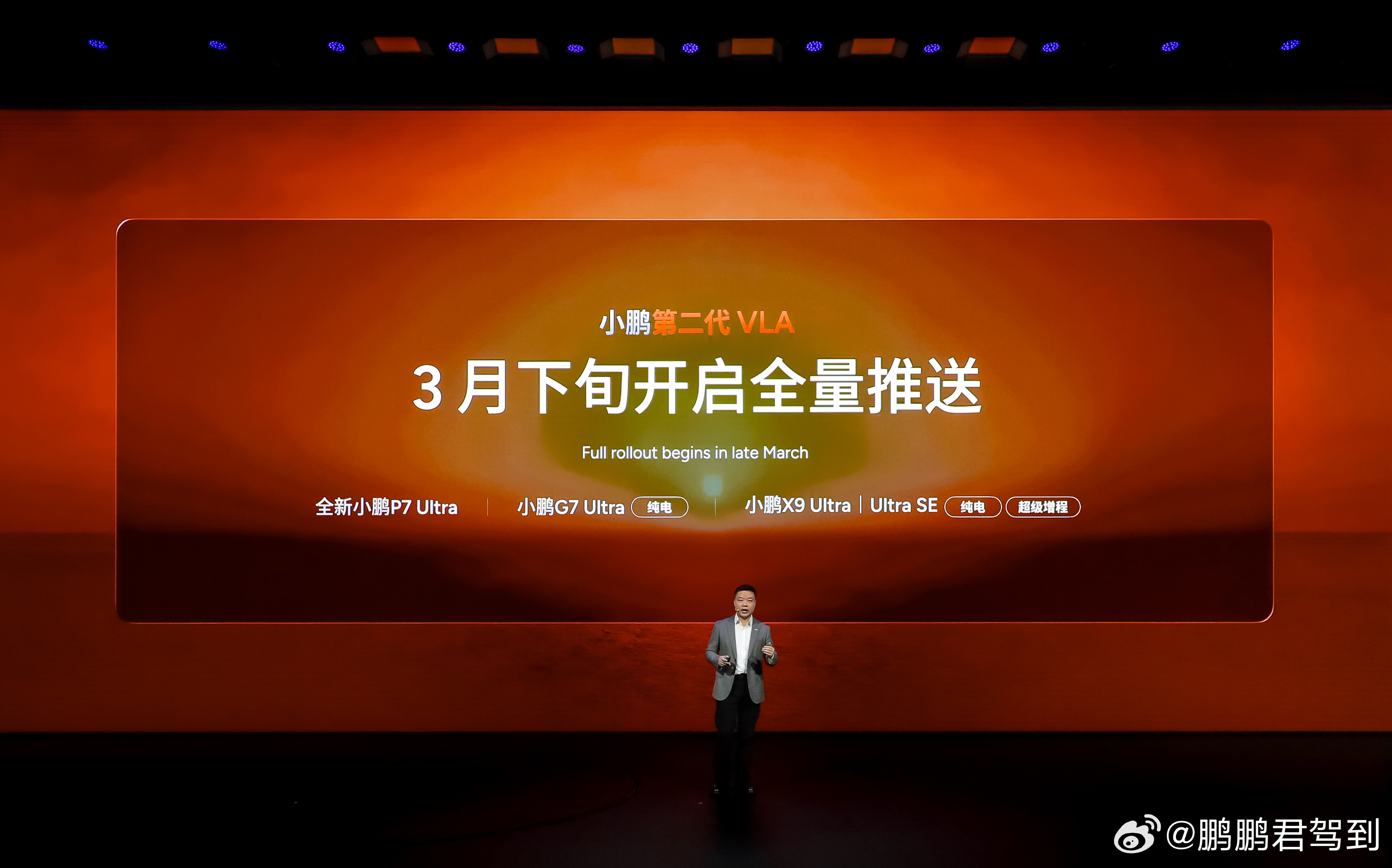 小鹏第二代VLA明确推送时间表。快来看看你的车型!🎉3月下旬 :开启全量推送,覆盖全新 P7 Ultra、G7 Ultra 纯电、X9 Ultra 和 Ultra SE纯电、超级增程🎉4月下旬:2026款小鹏P7+Ultra| Ultra SE、2026款小鹏G6 Ultra|Ultra SE、2026款小鹏G9 Ultra|Ultra SE、小鹏G7Ultra|Ultra SE超级增程小鹏第二代VLA发布小鹏智驾负责人称拉开差距的时刻到了