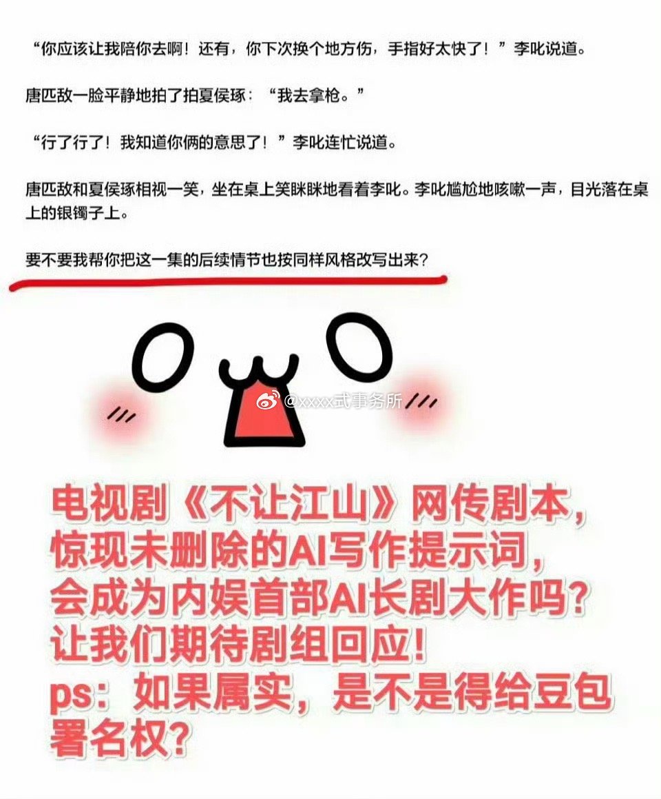 不让江山三编剧剧本被指出出现ai提示词,如果是真的,S+大剧剧本用ai写是大雷吧