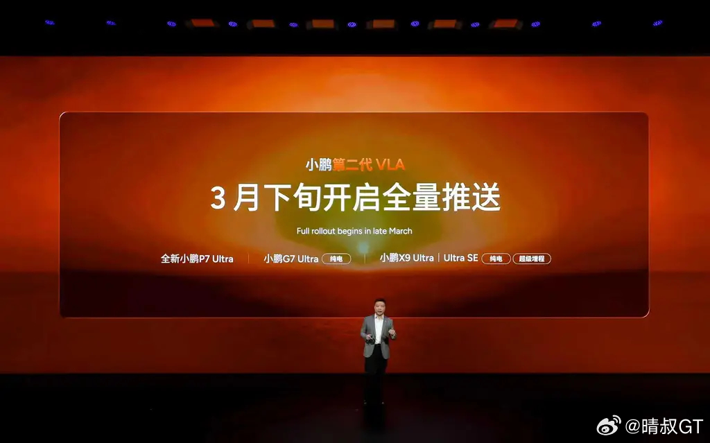 3月2日,小鹏汽车正式发布第二代VLA,将于3月下旬开启全量推送。第二代VLA通行效率比传统L2、Robotaxi快30%,耗时无限接近导航模拟时间。同时,还支持看懂交警手势,查酒驾场景自动减速配合。官方表示,小鹏第二代VLA将在2027年开启全球交付,大众将成为小鹏第二代VLA首发客户。大众将成小鹏第二代VLA首发客户小鹏汽车小鹏汽车汽车资讯