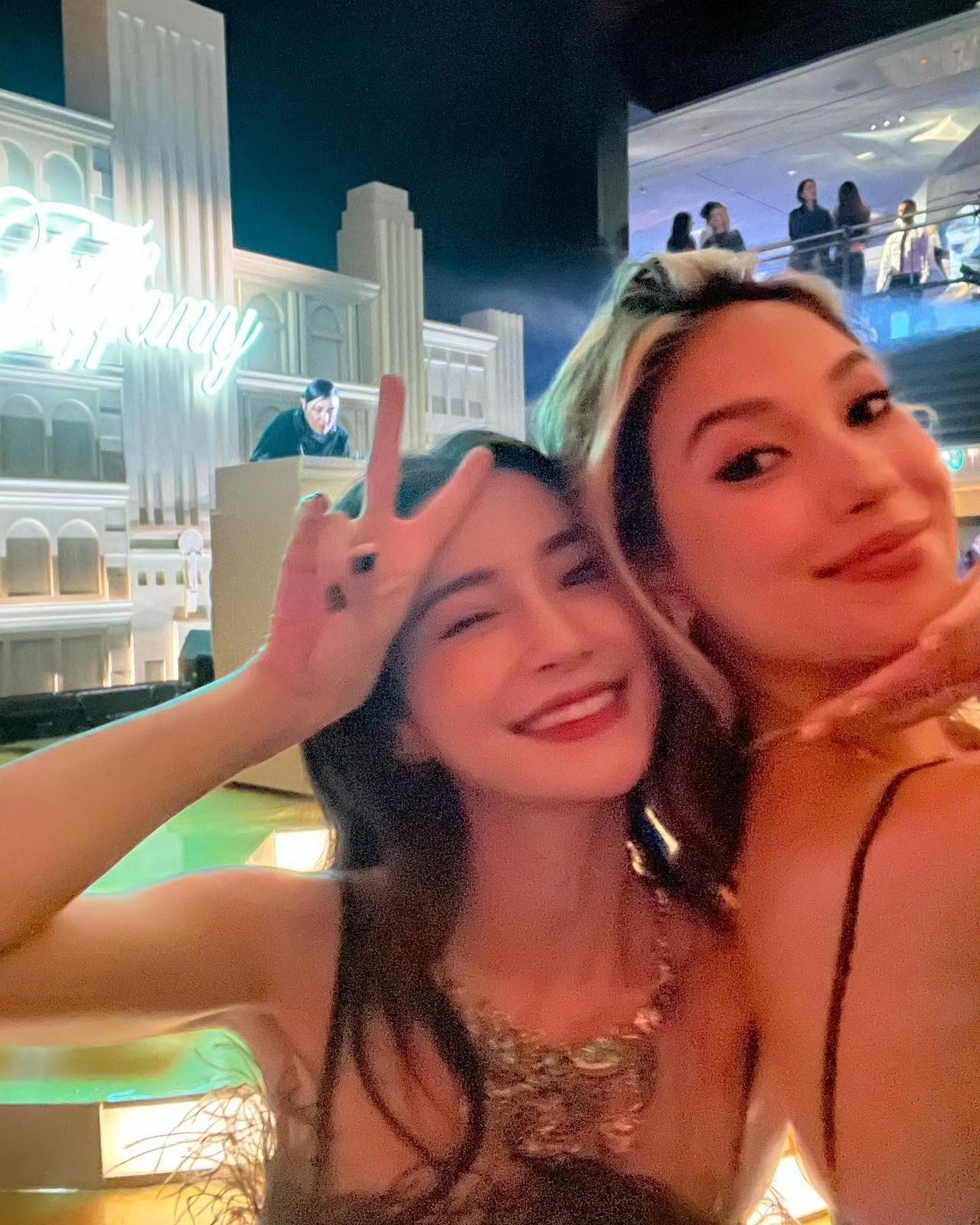 Angelababy杨颖和闺蜜一起庆祝37岁生日,她的打扮贵气又时尚,妆容精致,
