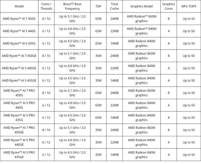 IT之家注意到,此次发布的型号命名格式与移动端兄弟产品一致但与此前桌面端的锐龙不同。此外其至高为8核CPU规格,显示新品不包含基于"StrixPoint"或"GorgonPoint1"芯片的产品。