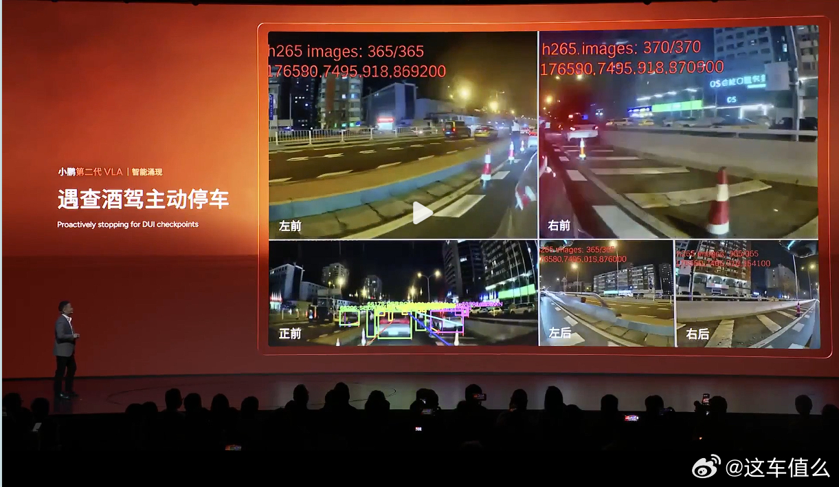 发布会上也展示了许多真实测试环境,这里就不一一赘述了,我就说几个我看到感觉离谱的:一个是夜间识别到一只小狗然后减速;后方有救护车直接靠边停车让行;警察查酒驾识别手势靠边等吹完气又自己开走....