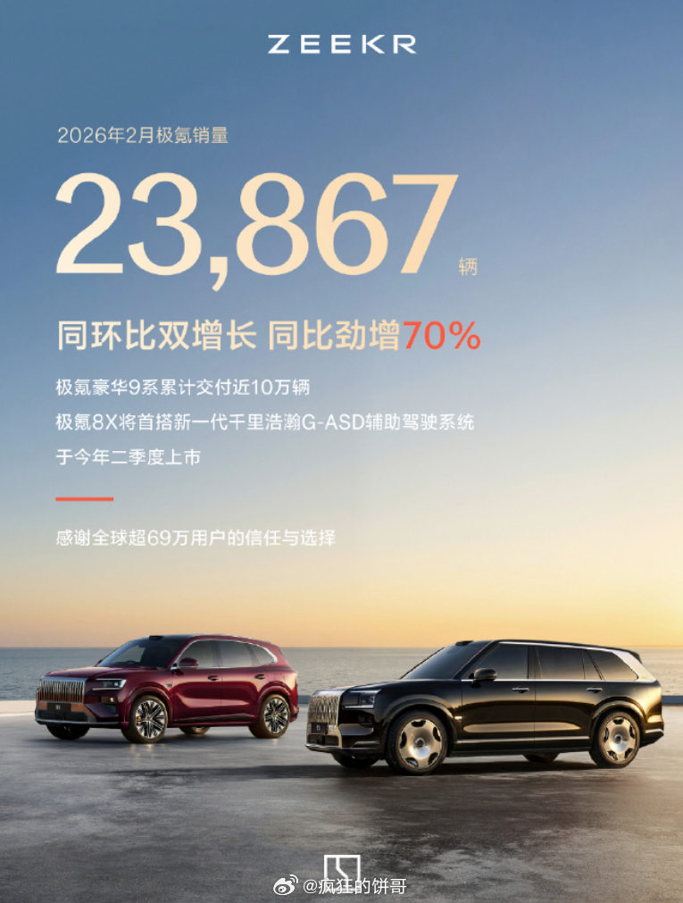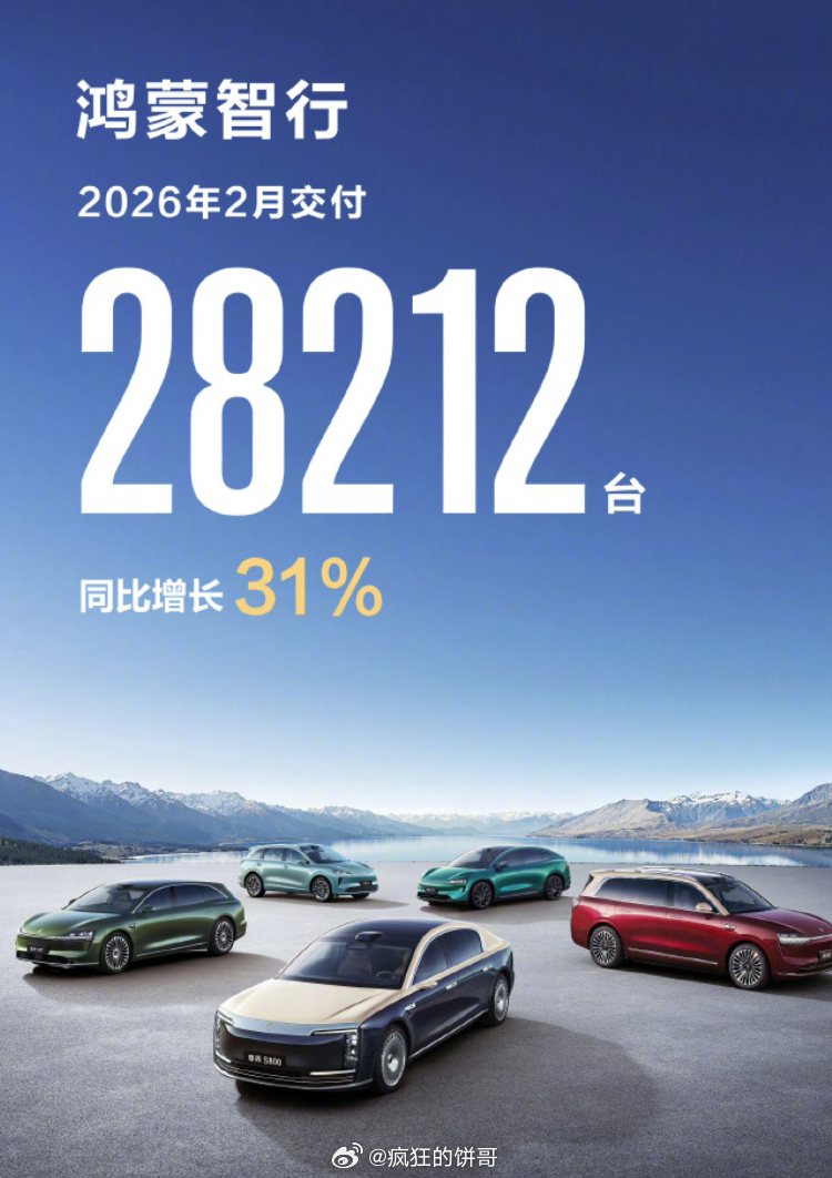 蔚来2月交付新车20797台,同比增长57.6%鸿蒙智行2月交付28212台,同比增长31%极氪2月交付量达23867辆,同比增长70%方程豹汽车2月销售17036辆,同比增长245%小鹏2月共交付新车15256台理想汽车2月交付26,421辆小米汽车2月交付量超过20000台零跑2月交付28067台岚图汽车2月交付8358辆,1-2月交付 18873 辆,其中1月交付10515辆。