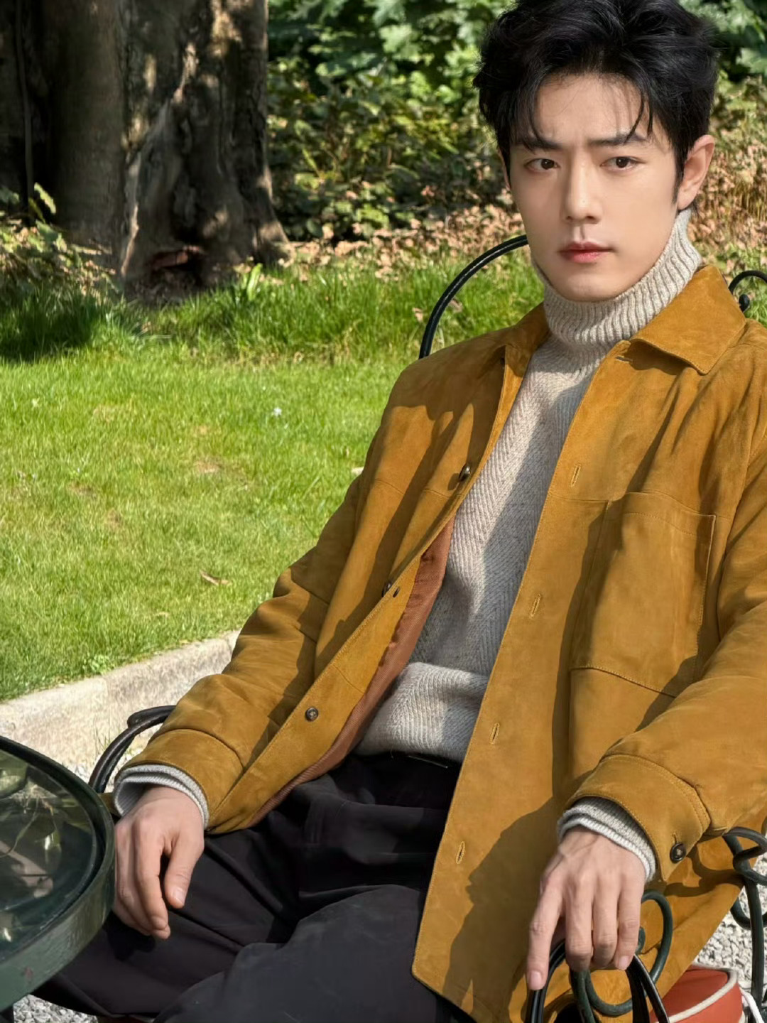 肖战最佳穿搭 肖战上榜VOGUE一周最佳穿搭 焦糖色麂皮外套搭灰色针织,颜值与气质双在线