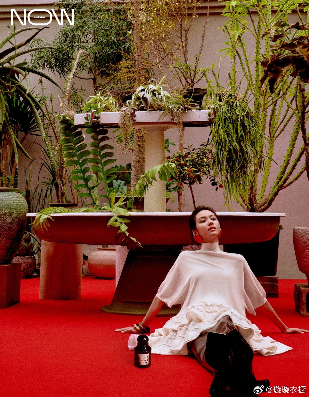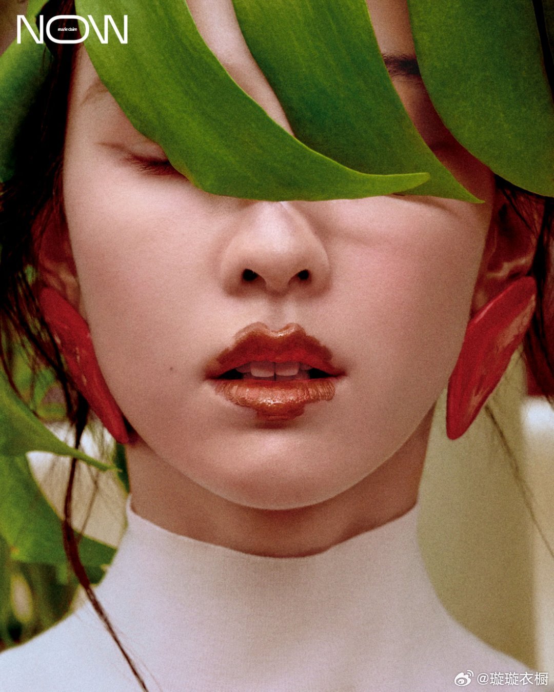 陈都灵皮革与明黄撞色,像极了冷静与热烈的共舞叶片轻遮眉眼,红唇似绽放在秘境的浆果,红绿墙前伫立,黑色身影是行走的艺术雕塑。陈都灵MarieClaireNOW春季刊封面陈都灵自然生发大片清冷是她热烈也是她