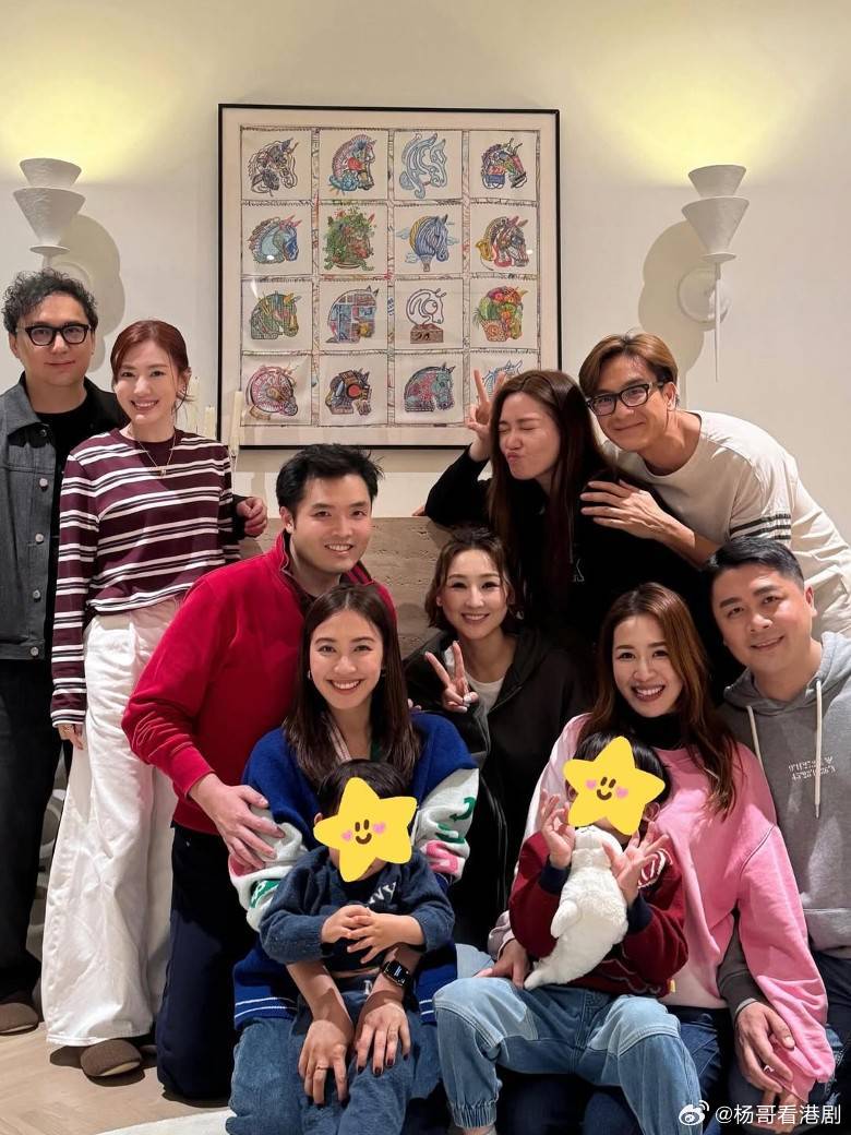 相中除咗有Tracy嘅工作相,同埋佢同老公、小朋友嘅合照之外,有一張大合照就引起唔少網民注目。相入面,Tracy同「2Line黨」成員蔣家旻、湯洛雯、岑杏賢一齊帶埋家人出席新年團拜,Tracy同岑杏賢更加帶住打咗格仔嘅小朋友一齊入鏡,氣氛溫馨又融洽。