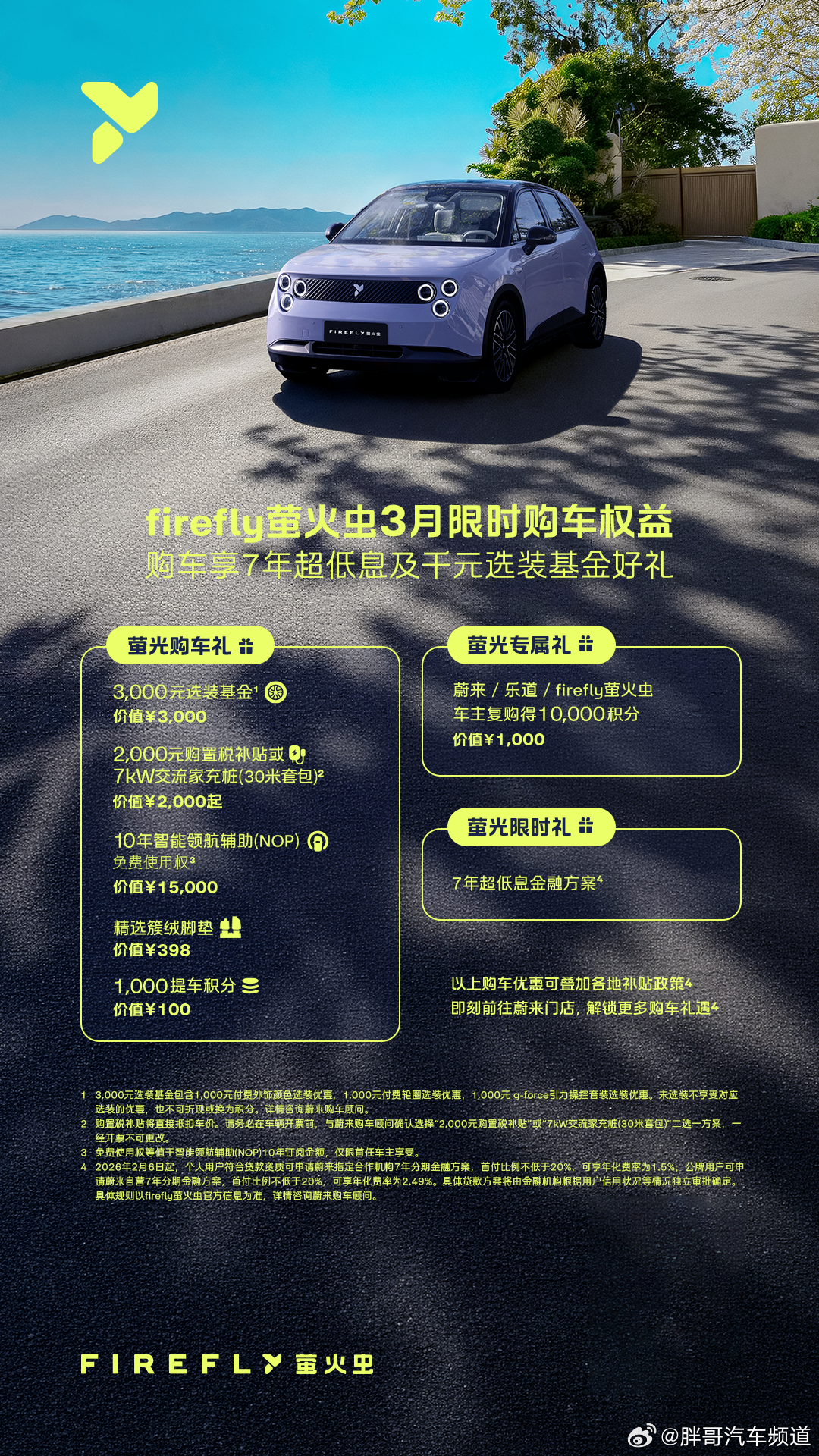 胖哥汽车频道 继多车型开启5年、7年低息后,firefly萤火虫也追上来了~7年