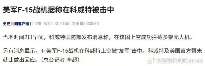 这条消息,有点不太正常。3月2日,科威特国防部那边发了通报——几架美军战机在
