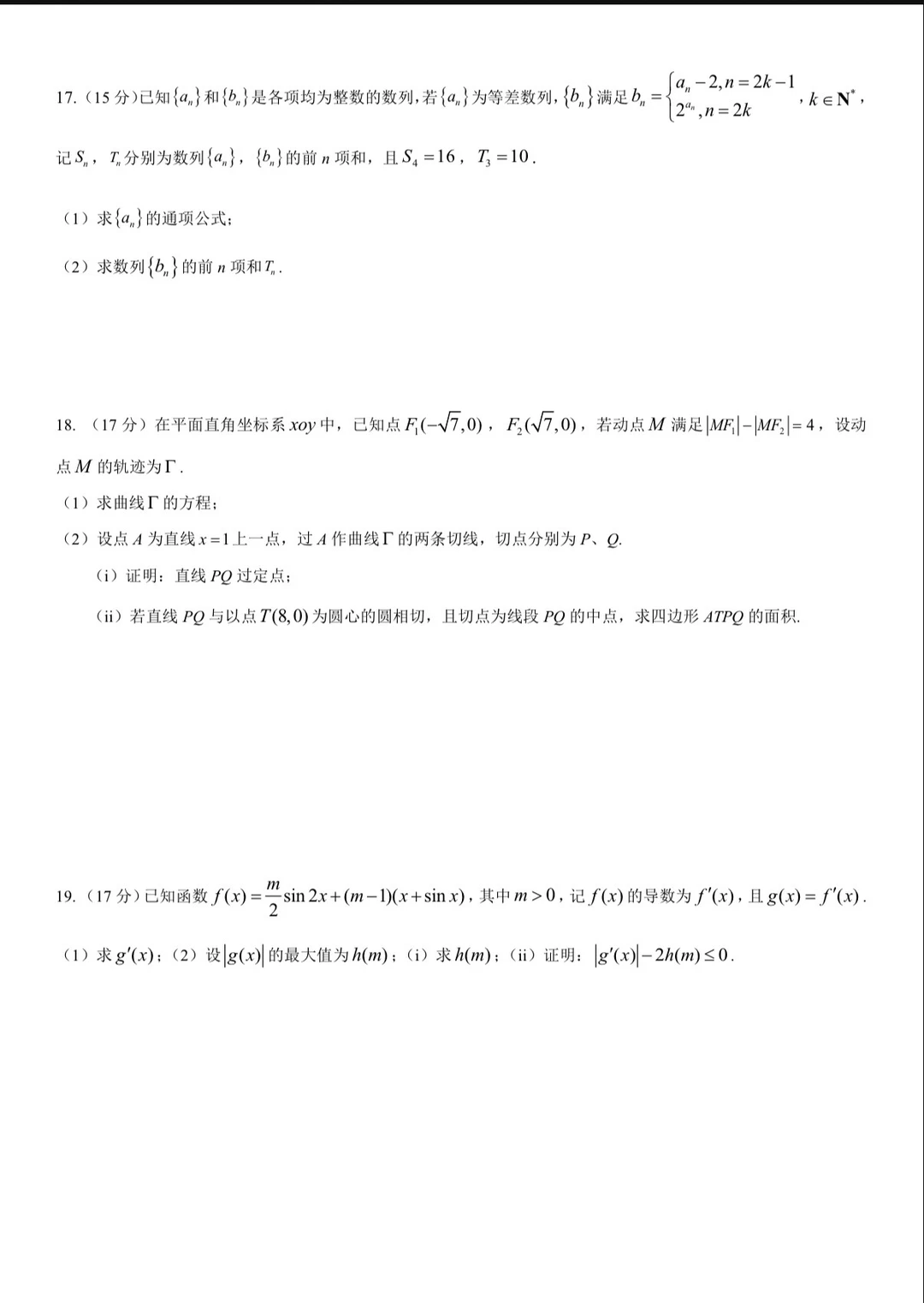 新学期来啦,高考倒计时98天!还是很紧张的,每个月有一次大型考试,很快就6月高考啦! 前两天进行了入学考试,分享给大家,空白卷在后面。18,19计算量偏大~