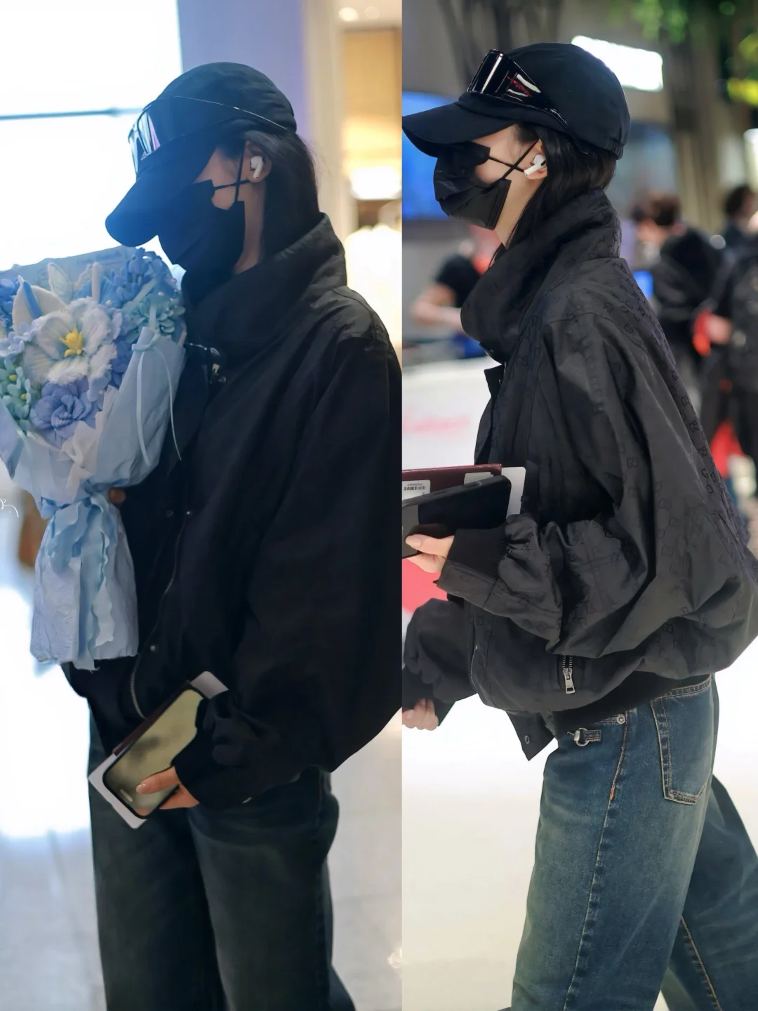 宁艺卓现身机场,包裹严实都掩饰不住的瘦削感,脸也是只有巴掌大,还收到了粉丝送的花花以及买了个gleato哈哈! 明星同款 明星私服 宁艺卓 图源 网络 侵权删