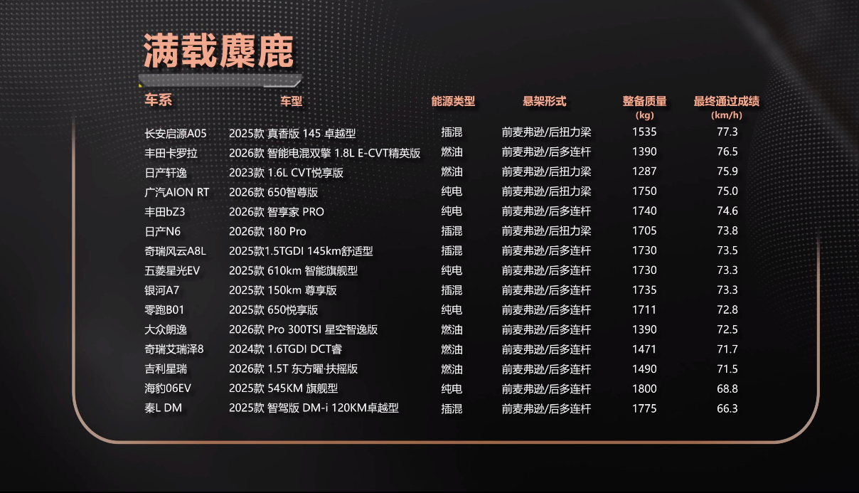 尤其是麋鹿这块,差距真的太吓人了。启源A05又稳又快,操控拉满,在懂车帝上这档达人十万家轿节目也说得很实在,这背后就是悬架结构的差距。人家多连杆,极限状态能牢牢拉住车身,不甩尾、不推头。有些车为了省成本用扭力梁,调校还软,平时开着舒服,一到极限对比直接露馅。