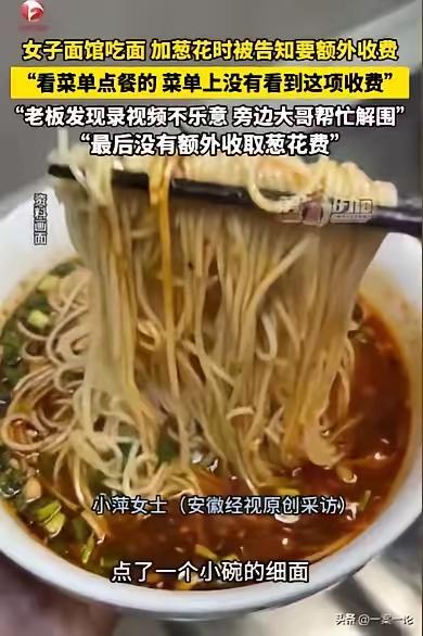 多大点事啊! 3月1日媒体报道,吉林一女子到面馆吃面,点了一碗细面,看到边上有一个小料台,放着各种调味品,于是就端着碗走过去,挖起一勺自己喜欢的小葱,刚往碗里倒了半勺,就听到服务员在边上说:葱花是要收费的! 女子的手停在了半空,心里很不明白,为啥吃面加点调料还要单独收费。于是就说:菜单上也没写着葱花要单独收费啊。但服务员告诉她就是这规定,要加的话就得另收费。女子觉得很奇怪,就打开手机准备录个视频,没想到这下激怒了店主,双方争吵了起来! 边上一位吃面的大哥看不下去了,就说那个店主:你让她加,能花你多少钱!这才替她解了围!女士将此事发布到了网上,没想到人们很感兴趣。 有人说,面馆老板格局太小,听说过吃火锅小料单独收费,吃面加葱花收费还真是第一次听说!好多店别说葱花了,就是小菜都是免费的,为食客提供全面的服务,才能顾客盈门,源源不断啊!这样小气,不是自断财路吗? 有人说,这有可能是个误会,是不是店里经营好几种饭,小料是为别的餐饮品类准备的,吃面不包括在内,如果都加,老板还不得赔死! 如果是你去吃面,遇到这样的店,会怎么做?