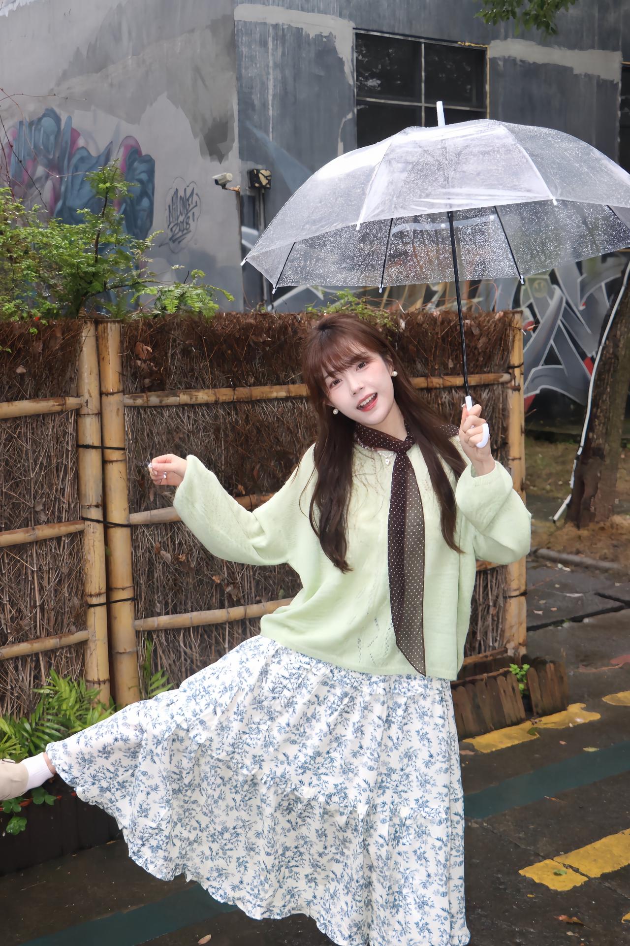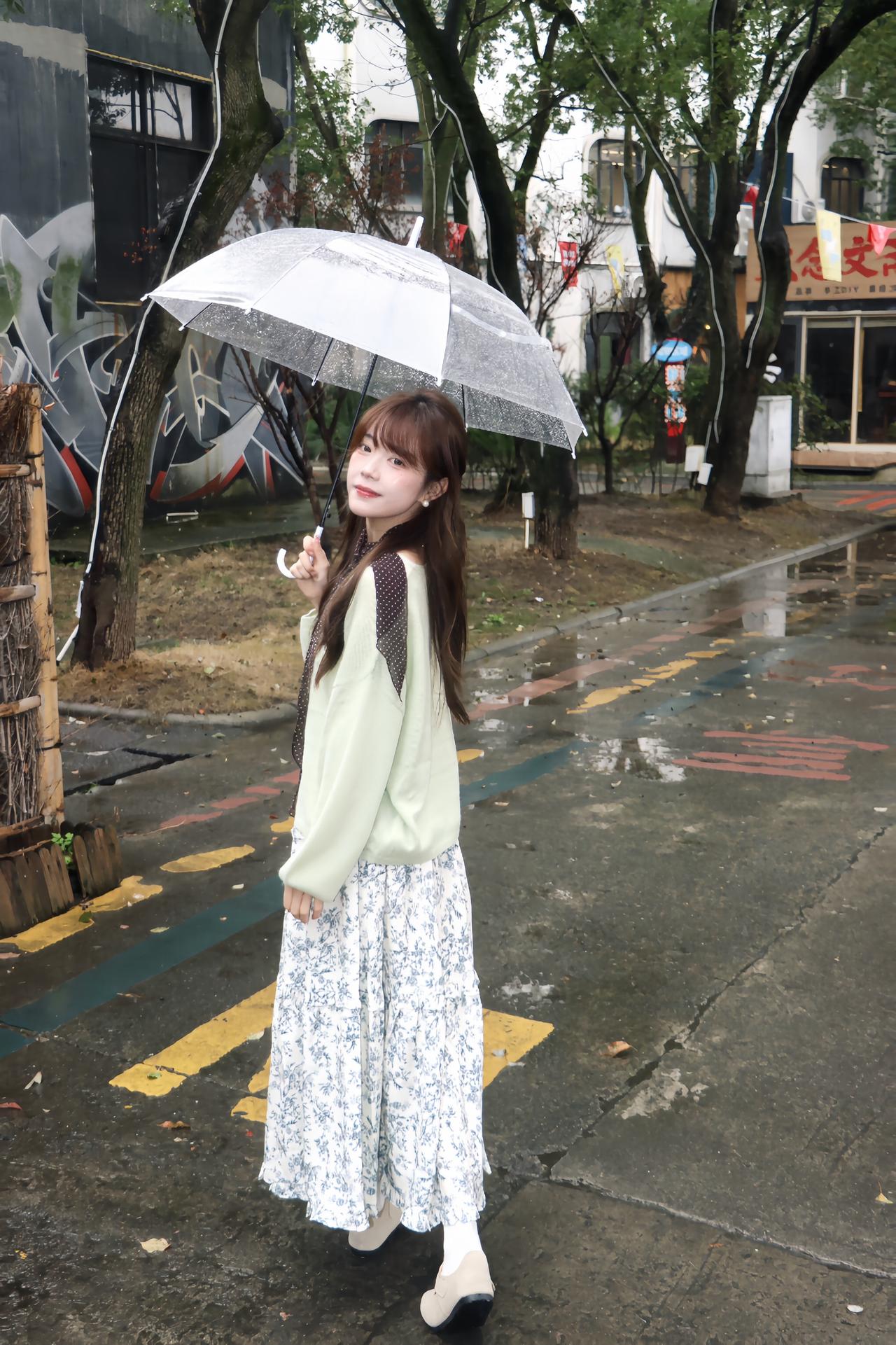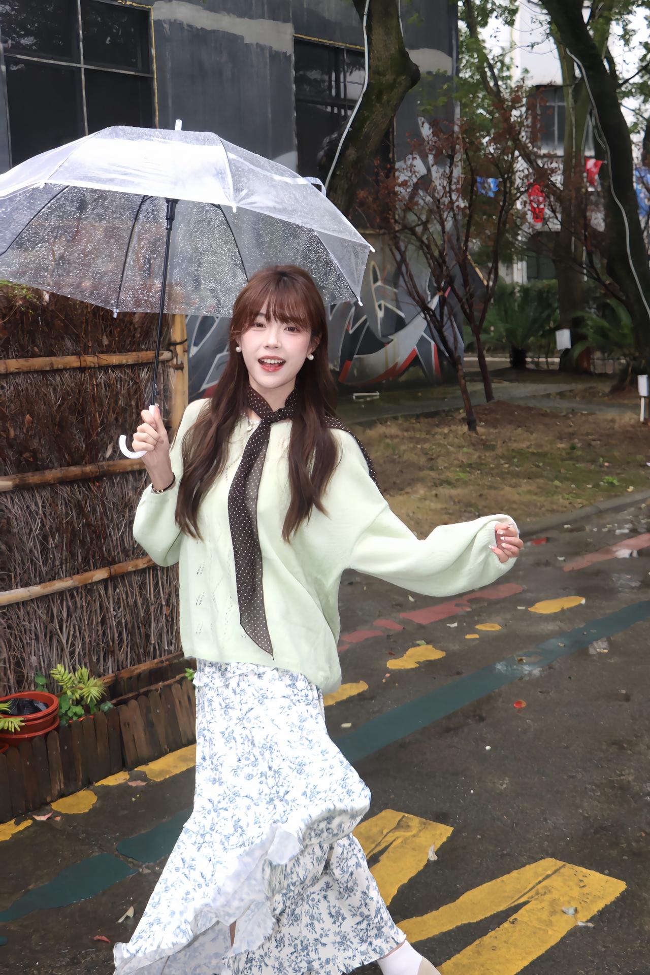 🧚♀️雨天氛围感穿搭公式|浅绿毛衣+碎花裙 春日穿搭 早春辣妹已就位