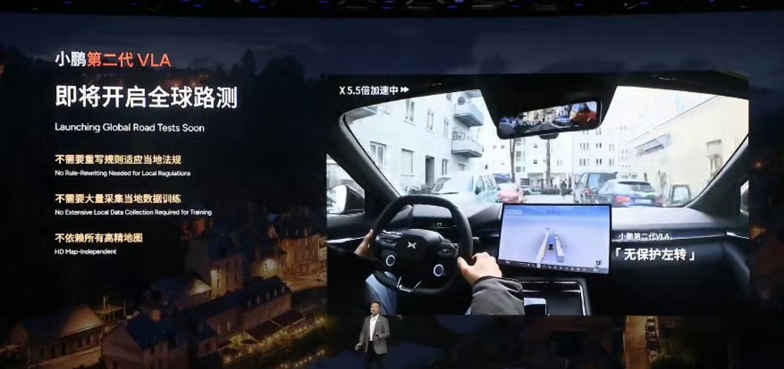 小鹏第二代VLA的Robotaxi已经开始公开道路测试,第二代VLA也即将开始全球路测,2027年开启全球交付。