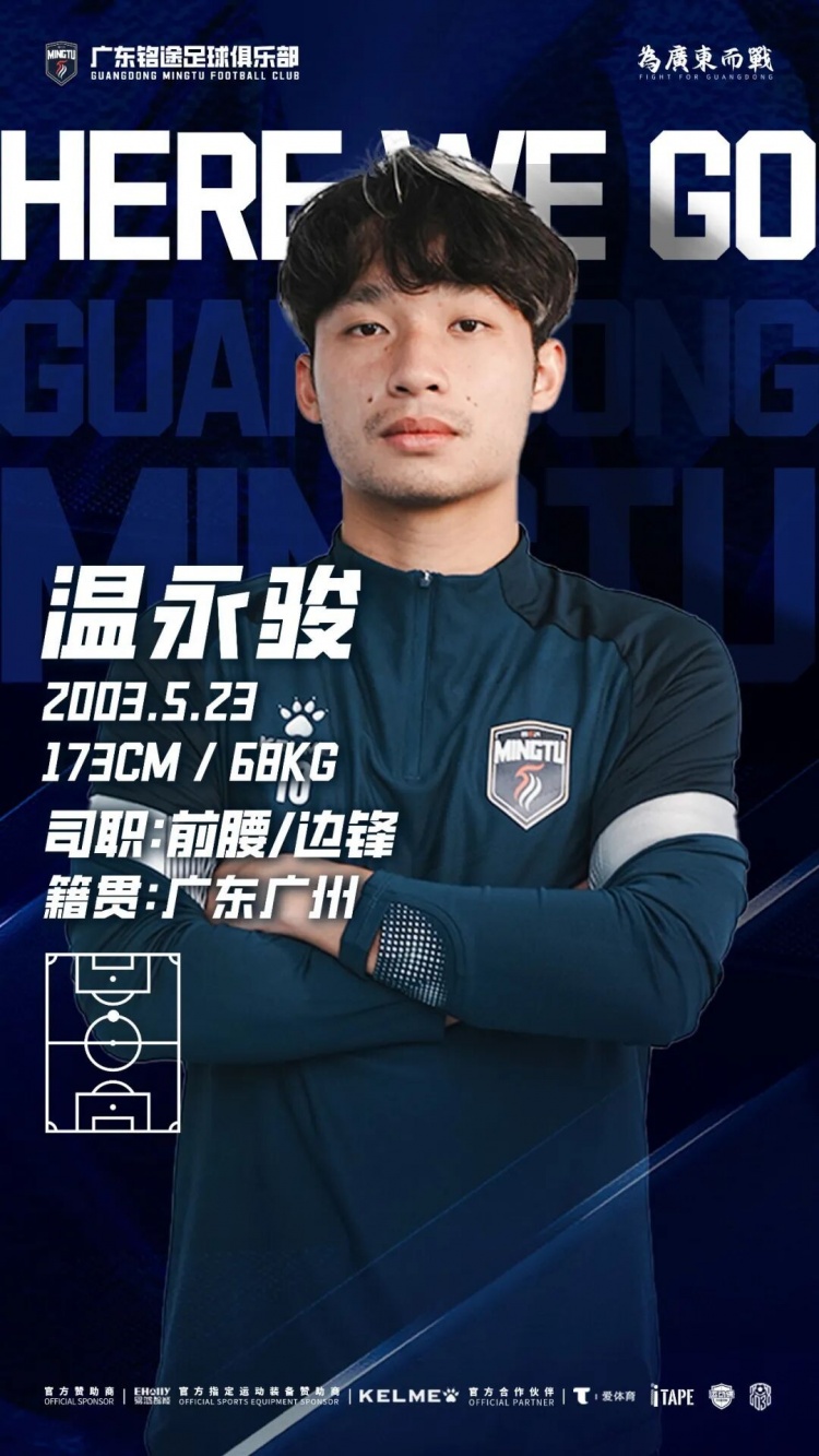 广东铭途足球俱乐部基于对赛季发展方向的整体规划,并与球员本人充分沟通协商,双方达成一致:球员温永骏即日起正式转会至广东铭途足球俱乐部一线队!