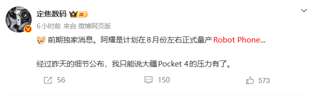 至于RobotPhone,有数码博主“定焦数码”在社交媒体平台上透露预计最快在8月量产上市。但截至发稿时,荣耀方面尚未对此作出回应。