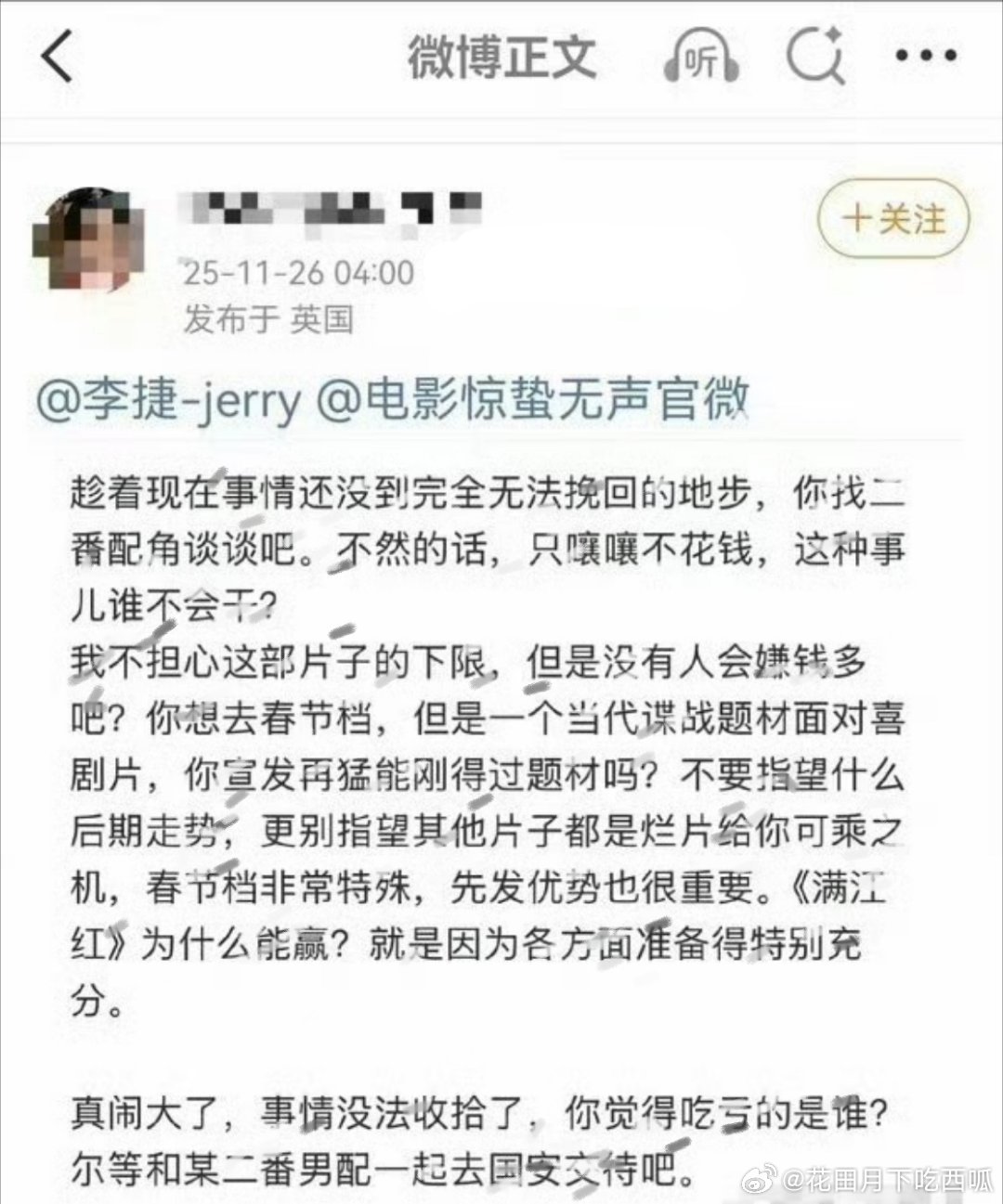 易烊千玺 朱一龙《惊蛰无声》还没下映,就又有乐子了易烊千玺粉丝正组织打12339聚宝电影下架,理由是美化反派、给反派加戏。 四粉和小笼包还在互相聚宝对方红帖、、、、这何意味啊,感觉还是头一回见这么搞自己一番电影的🙉惊蛰无声灵魂十问易烊千玺严迪2月电影角色冠军