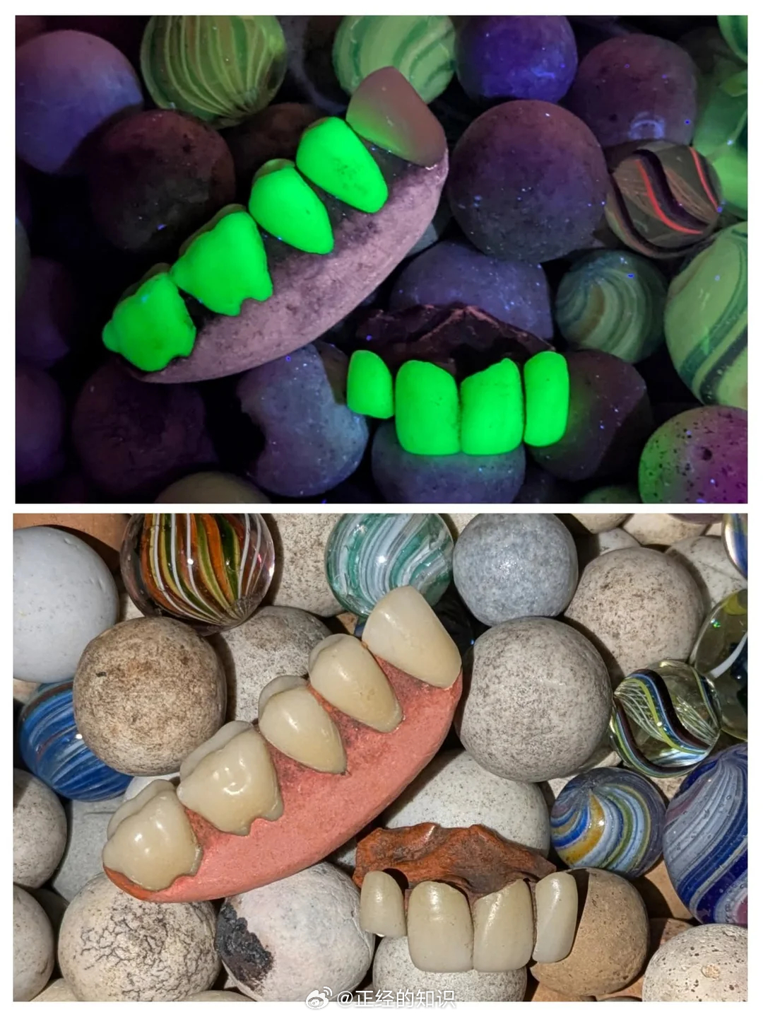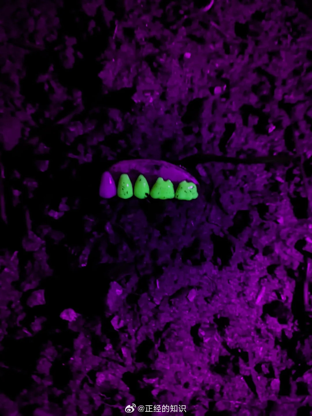 在英国维多利亚时代的垃圾填埋场找到了这些乳白铀玻璃假牙,是获得许可的铀玻璃假牙