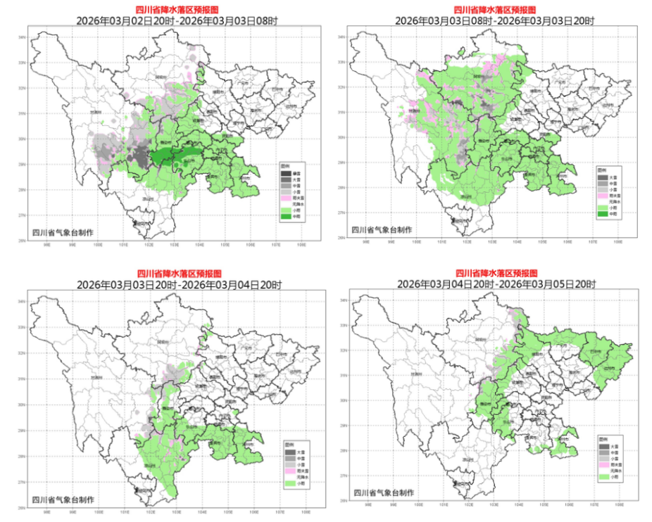 四川省气象台预计,3月上旬,冷空气活动势力偏弱,全省大部气温仍明显偏高。盆地大部、川西高原北部东部和凉山州东北部晴阴相间,早晚多分散小雨或阵雨(雪);川西高原南部和攀西地区西部南部大部时段多云间晴,午后到傍晚风力较大,空气干燥,森林、草原火险气象等级较高。