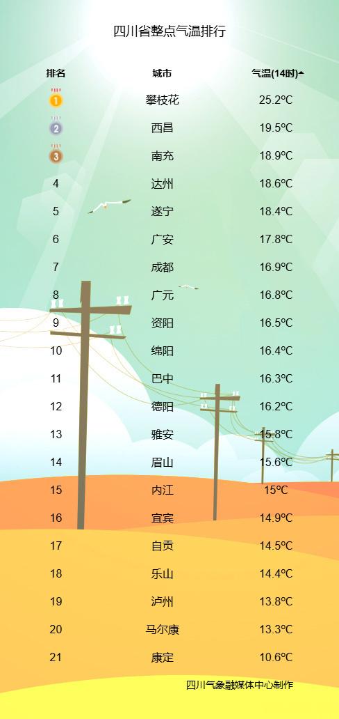 2026年3月2日14时四川各城市实况气温