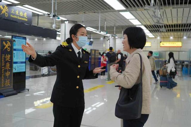 海关关员在为旅客提供通关咨询服务。