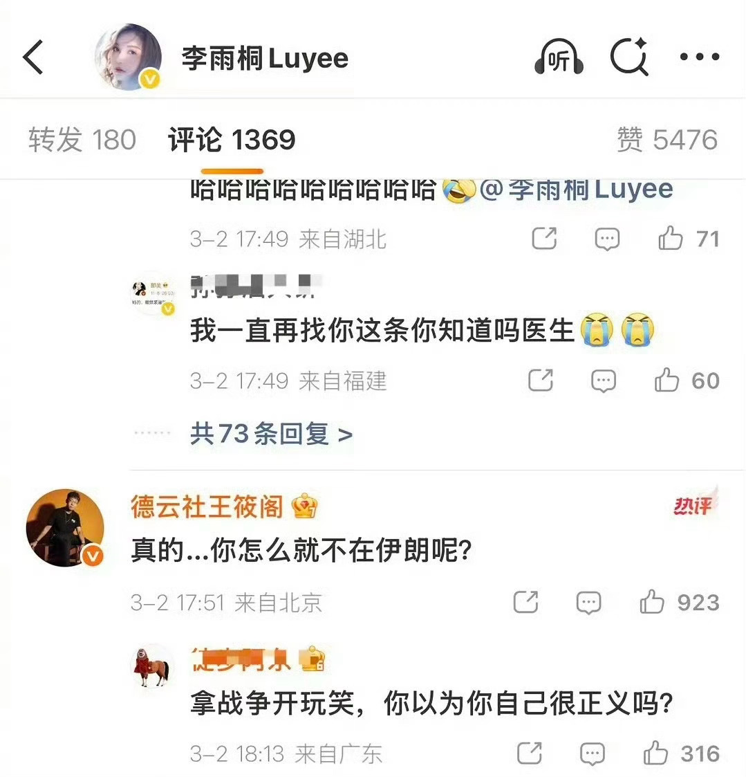 德云社王筱阁在李雨桐微博下评论“你怎么就不在伊朗呢”?他要被郭德纲逐出师门了吧?