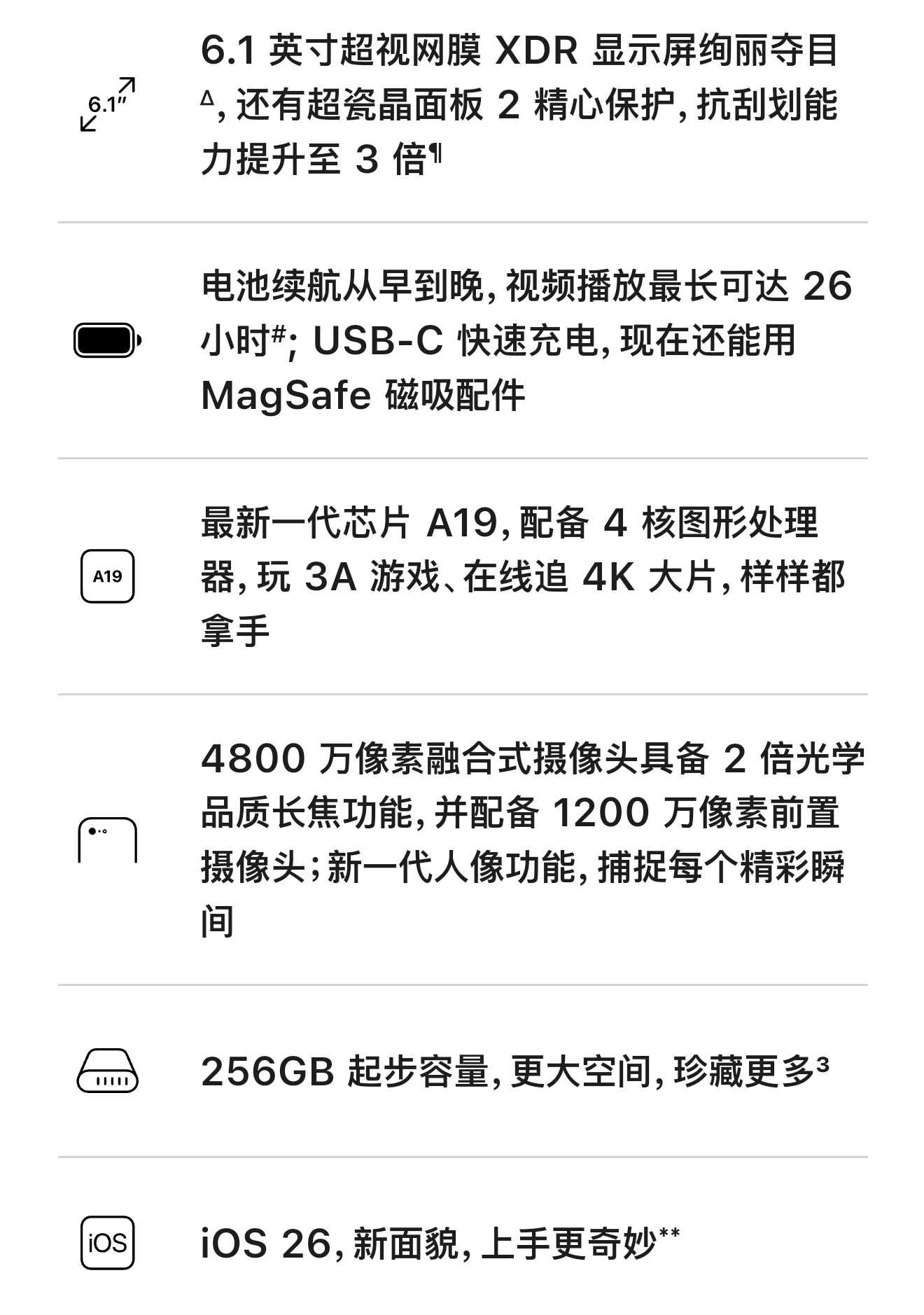 iPhone17e发布了,起步价4499,三种颜色两个存储可选。