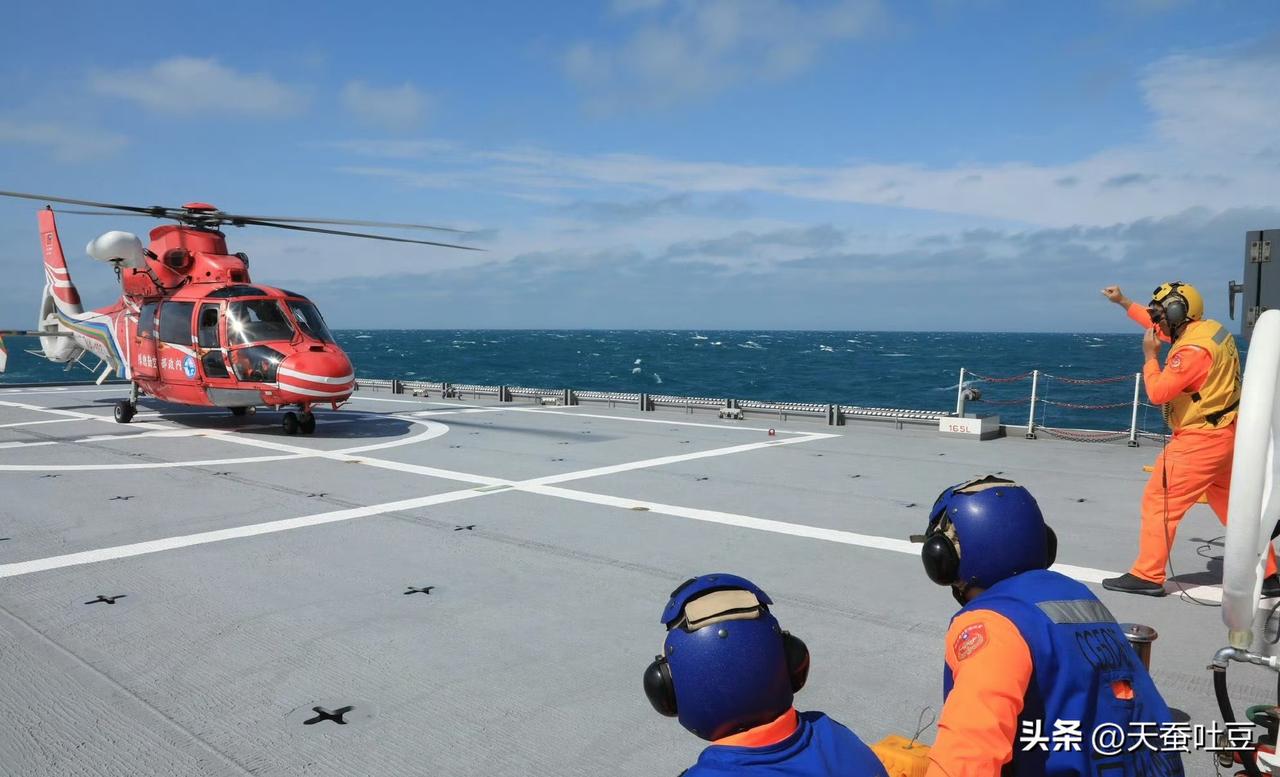 近日,台湾省“伪海巡署”舰队分署5000吨级巡逻救难舰“台北”舰与台省“伪内政部”们空勤总队“海豚”直升机举行协调演练。台湾导弹快艇 海警环台岛执法