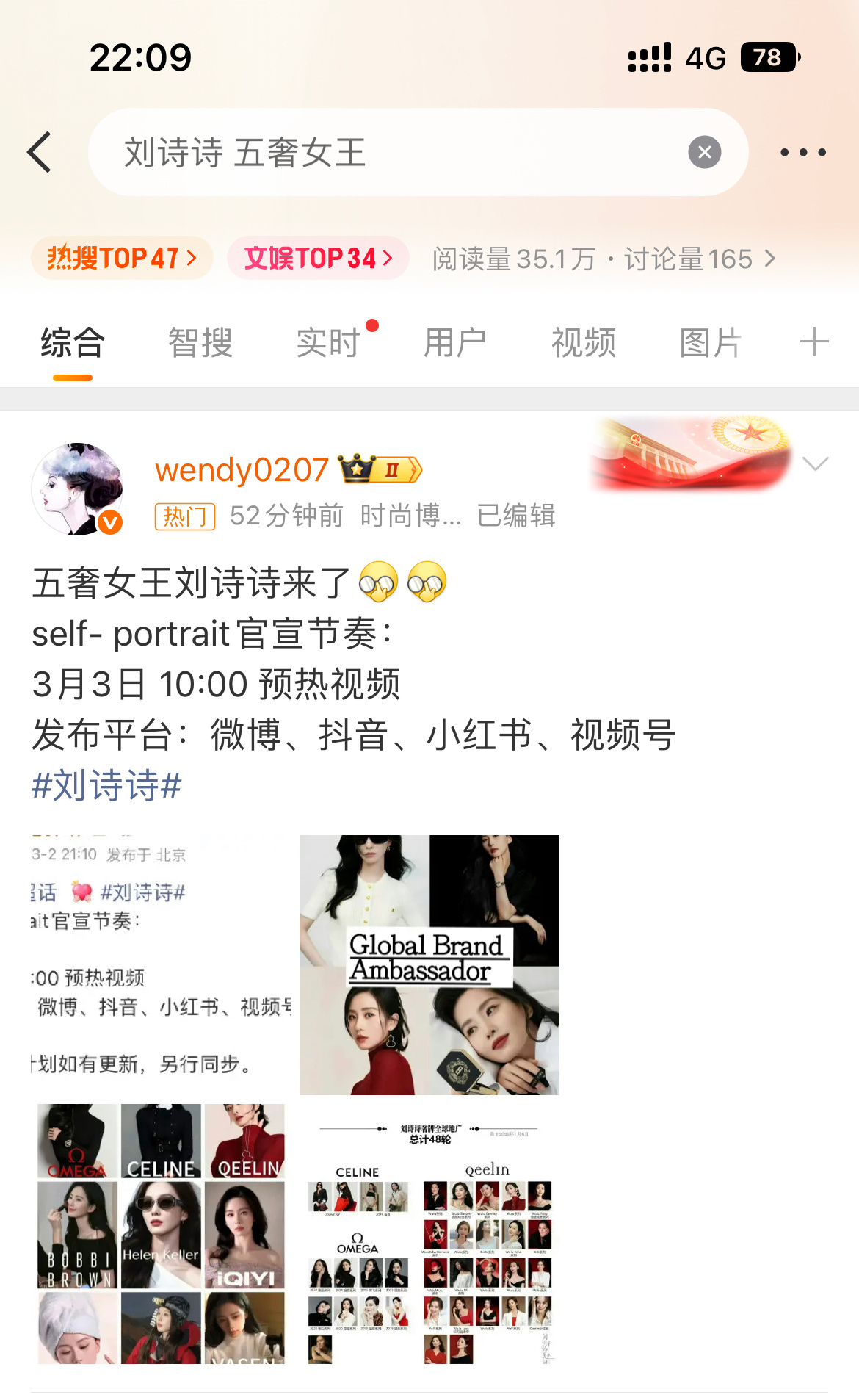 刘诗诗 五奢女王发了个博,突然上热搜了