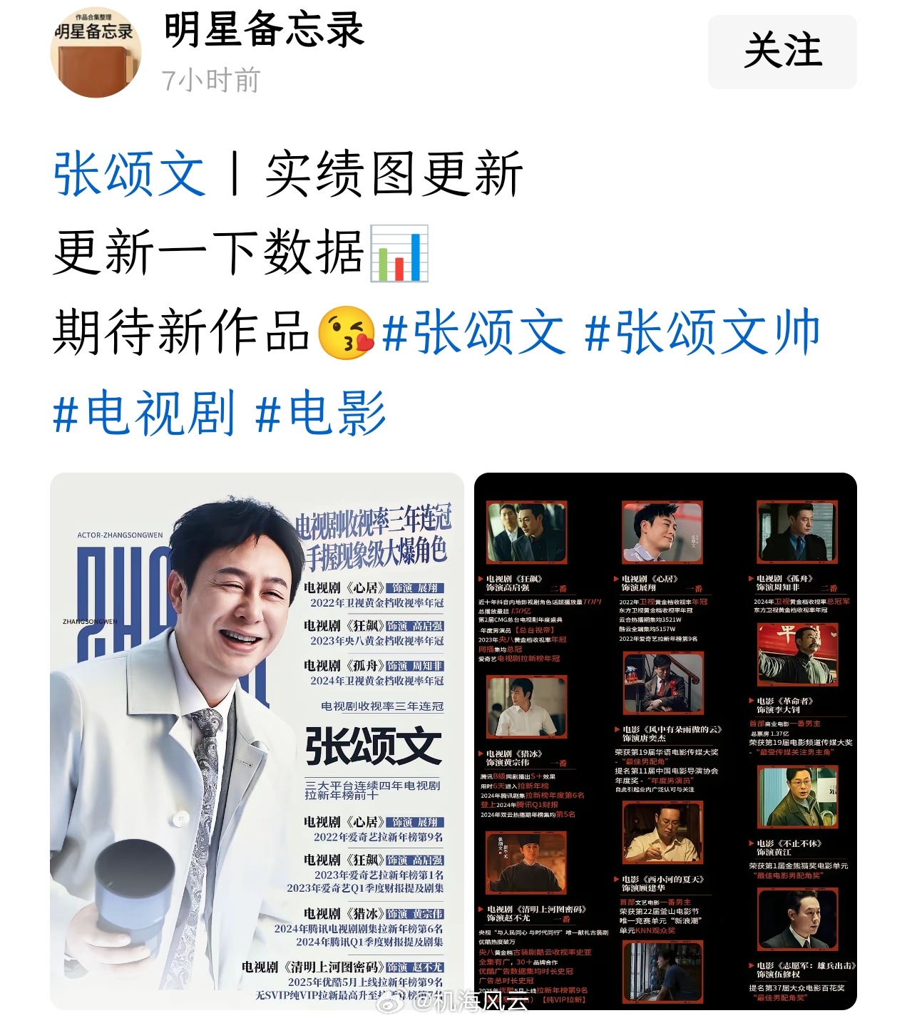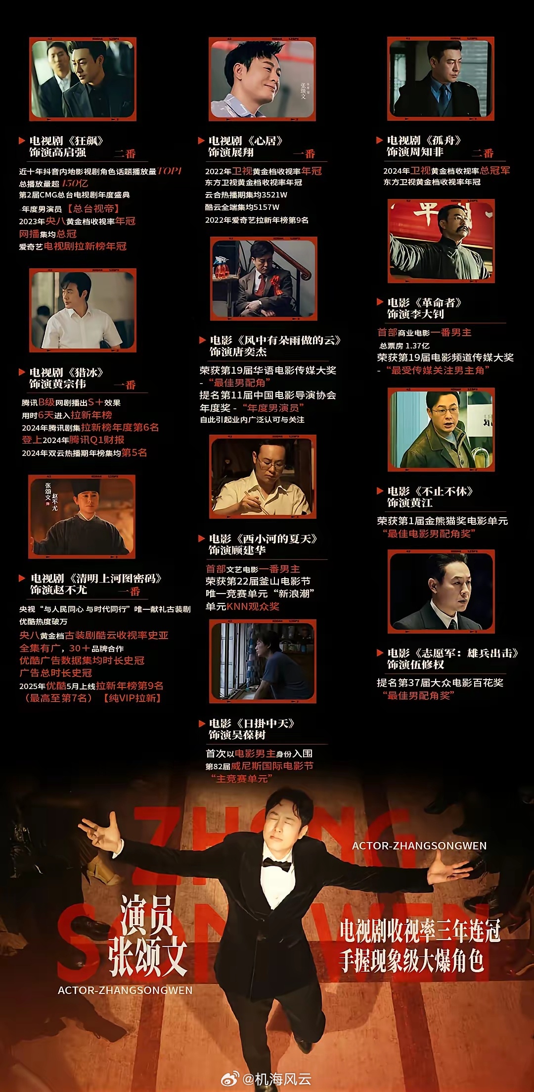 这个网友贴的图好!统计了张颂文老师这些年的经典代表作(大多数,还漏了不少佳作),电视剧、电影都有,建议有需要的收藏一下,防止剧荒