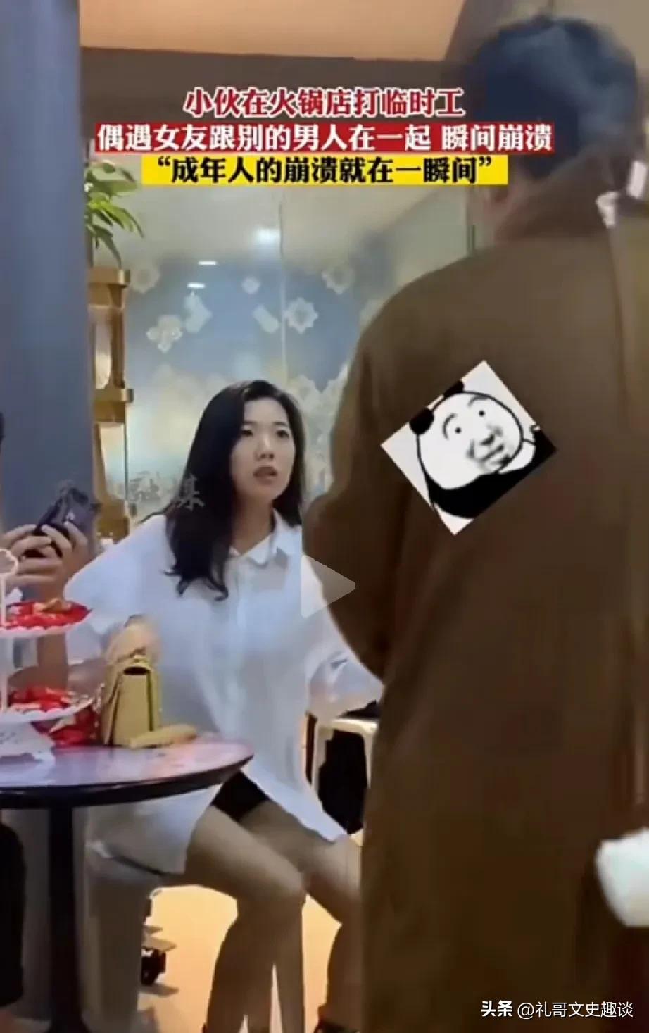 男子兼职挣钱养家,女友的做法让他愤怒。男子不辞辛苦,兼职在火锅店里做临时工,为的就是多挣点钱,给他女友买个苹果手机,让他女友过得更幸福一点。 就在他上班的时候,让他意想不到的事情发生了,他的女友正背着他和另外一个男人来到这个火锅店里吃饭,正好被他撞见。 男子走上前摘掉布偶头套,他女友看呆了,一时无话可说。 男子气的什么都没说,扭头就走了,女子赶紧追过去解释,男子不听她解释,说分手吧,不耽误你们幸福。男子及时止损还是很明智的。