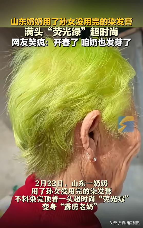 “笑不活了!”2月22日,山东,一老人见孙女的染发膏没用完,便随手给自己染了个头发,没想到染完后,头发都变成了浅绿色,看着镜子里的自己,老人忍不住笑,似乎对这个发色十分满意!网友:开春了,咱奶也发芽了! 早就说过,老一辈人的节俭基因,那是刻在骨子里的,比什么DNA都顽固,这不,山东的刘奶奶用实际行动给大伙儿上了一课——什么叫“东西只要没坏,就还能用”。 结果呢?整出了个大新闻:一头荧光绿,绿得跟三月田埂上刚冒头的麦苗似的,那叫一个生机勃勃。 刘奶奶对着镜子先是愣了三秒,然后也没绷住,直接笑了,不是那种尴尬的干笑,是捧着肚子、眼角挤出层层褶子、整个人往后仰的那种大笑,笑得眼泪花都出来了,根本停不下来。 事情还得从头说起,过年的时候,孙女回家收拾屋子,顺手把一瓶还剩大半的染发膏,扔进了垃圾桶。 年轻人的想法简单直接——这颜色我不喜欢了,哪怕剩再多也是占地方的废品,不如扔了清净。 刘奶奶正好路过,瞄了一眼垃圾桶,眼神立马就直了。 “还剩这么多呢,扔了多可惜啊!”就这几个字,对一个从苦日子里熬过来的老人来说,比什么扎心的广告词都管用,她当场就心疼了,弯下腰就要去捡。 孙女眼疾手快,一把拦住:“奶,这颜色您真用不了,太扎眼了,别捡了。” 话说得够明白了吧?道理讲得也够清楚了吧?刘奶奶点了点头,看起来像是听进去了,也没再坚持。 可孙女前脚刚出门,老太太后脚就把那瓶染发膏从垃圾桶里捞了出来,还像宝贝似的擦了擦瓶身。 说实话,这真不是老太太故意跟谁对着干,或者是倔脾气上来了,这是刻在骨头里的本能反应。 那个年代过来的人,见不得一点浪费,一瓶还剩大半的东西,不管它是什么颜色,只要还能用,扔掉就是暴殄天物。 在她的世界里,“用不了”和“不能用”那是两码事,“不喜欢”和“没用处”更是八竿子打不着。 接下来的操作,堪称一场没有剧本的行为艺术大赏。 刘奶奶拉上老伴当助手,两个人配合默契,像是在完成一项神圣的任务,老伴负责挤染发膏,刘奶奶负责涂抹,仔仔细细,一丝不苟,连鬓角的白发都没放过。 至于说明书?那种密密麻麻的小字,老一辈人干活靠的是几十年的经验和手感,谁看那玩意儿啊。 她满心期待的画面大概是这样的:洗完头吹干,镜子里出现一个精神焕发、黑发浓密的自己,发色自然得体,邻居见了都得夸一句“哎呀嫂子今天看着真精神,年轻了好几岁”。 然而现实给了她一个大大的惊喜——一头荧光绿。 问题出在哪儿?那瓶染发膏本身就是浅色系的特殊配方,专门给年轻人玩花样用的,叫什么“极光绿”还是“闷青色”来着。 本来是需要漂发才能出效果的,结果遇到了刘奶奶这一头毫无抵抗力的白发,那颜色直接吃透了,效果直接拉满——不是低调深沉的墨绿,也不是含蓄内敛的深青,而是那种春天第一茬嫩芽的、生机勃勃的、想忽略都不可能的荧光浅绿。 换个人遇到这事儿,可能当场就恼了,花了功夫,费了时间,结果顶着一头绿毛,这要是出门不得被笑话死?搁谁身上不上火? 但刘奶奶的反应是什么?越看越乐,嘴角压不住地往上翘,对着镜子左照右照,那表情分明在说:嘿,还挺好看,挺别致。 这份笑容里藏着的东西,比发色本身有意思得多,它是一个人跟生活磕磕绊绊相处了大半辈子之后,长出来的松弛感。 事情已经这样了,恼有什么用?不如笑,笑着笑着,还真觉得这颜色挺时髦,挺衬肤色。 家里人把这一幕拍了下来,往网上一发,评论区直接炸了锅。 “开春了,咱奶也跟着发芽了!这寓意好啊!” “这绝对是节俭界的天花板,潮流圈的一把手!” “别人染这色还得花好几百漂发,奶奶这是变废为宝,又省钱又赶时髦,赚大了!” “‘春风吹又生’,说的就是咱奶这头顶的生机吧!” 大家笑归笑,但笑完之后,心里头好像被什么软软的东西碰了一下。 说白了,这个时代不缺精致的人,不缺焦虑的人,更不缺对着镜子挑剔自己哪里不够完美的人。 缺的恰恰是刘奶奶这种能耐——事情脱离预期的时候,不较劲,不拧巴,对着镜子里那个意外的自己,痛痛快快地笑出声来,哪怕那一头荧光绿亮得有点过分。 这大概就是生活最擅长的事:在你认真对待它的时候,冷不丁塞给你一个惊喜,哪怕这个惊喜,绿得让人眼前一亮。 信息来源:《山东奶奶用了孙女没用完的染发膏,满头“荧光绿”超时尚,网友笑疯:开春了,咱奶也发芽了!”》闪电新闻