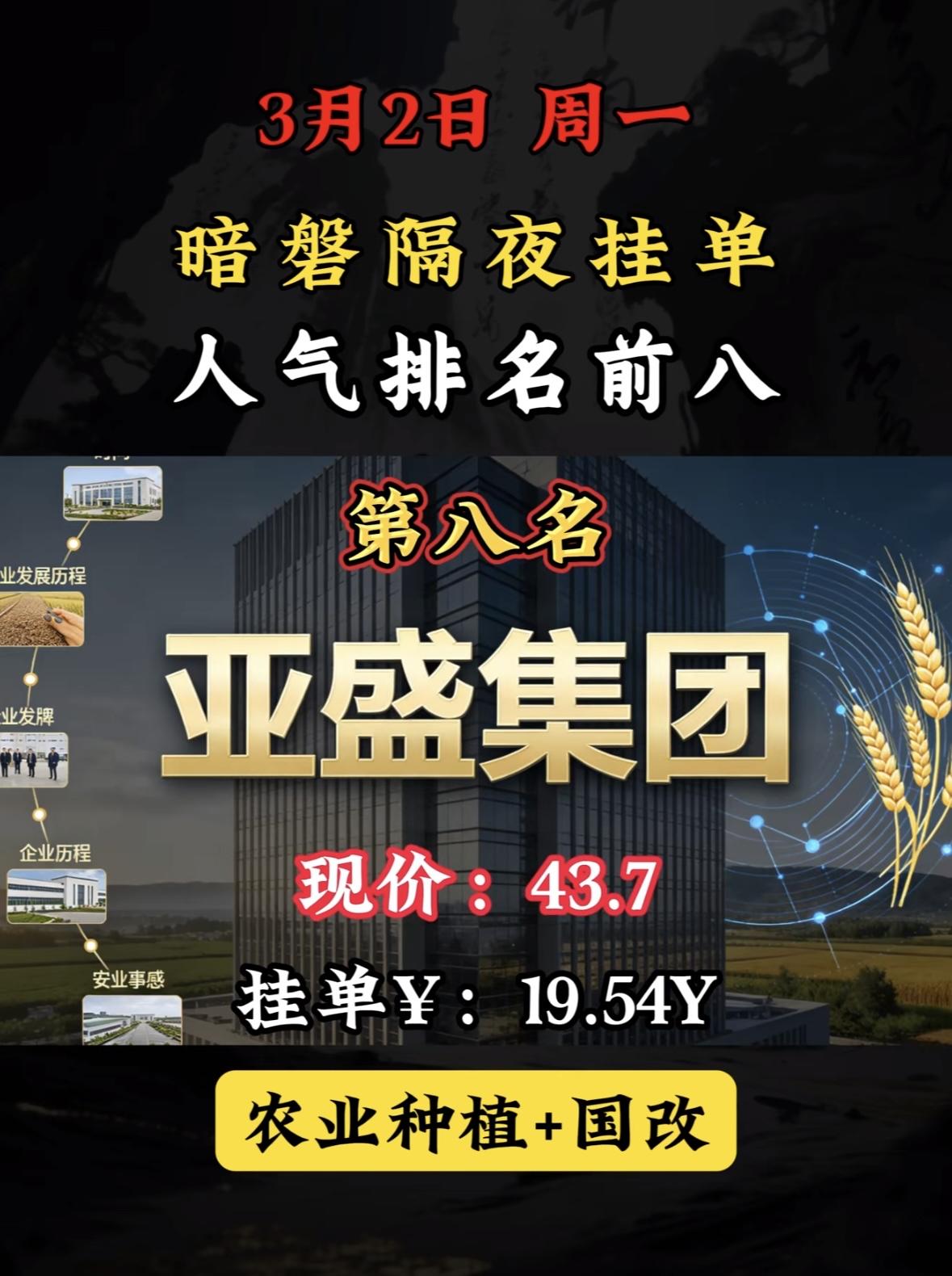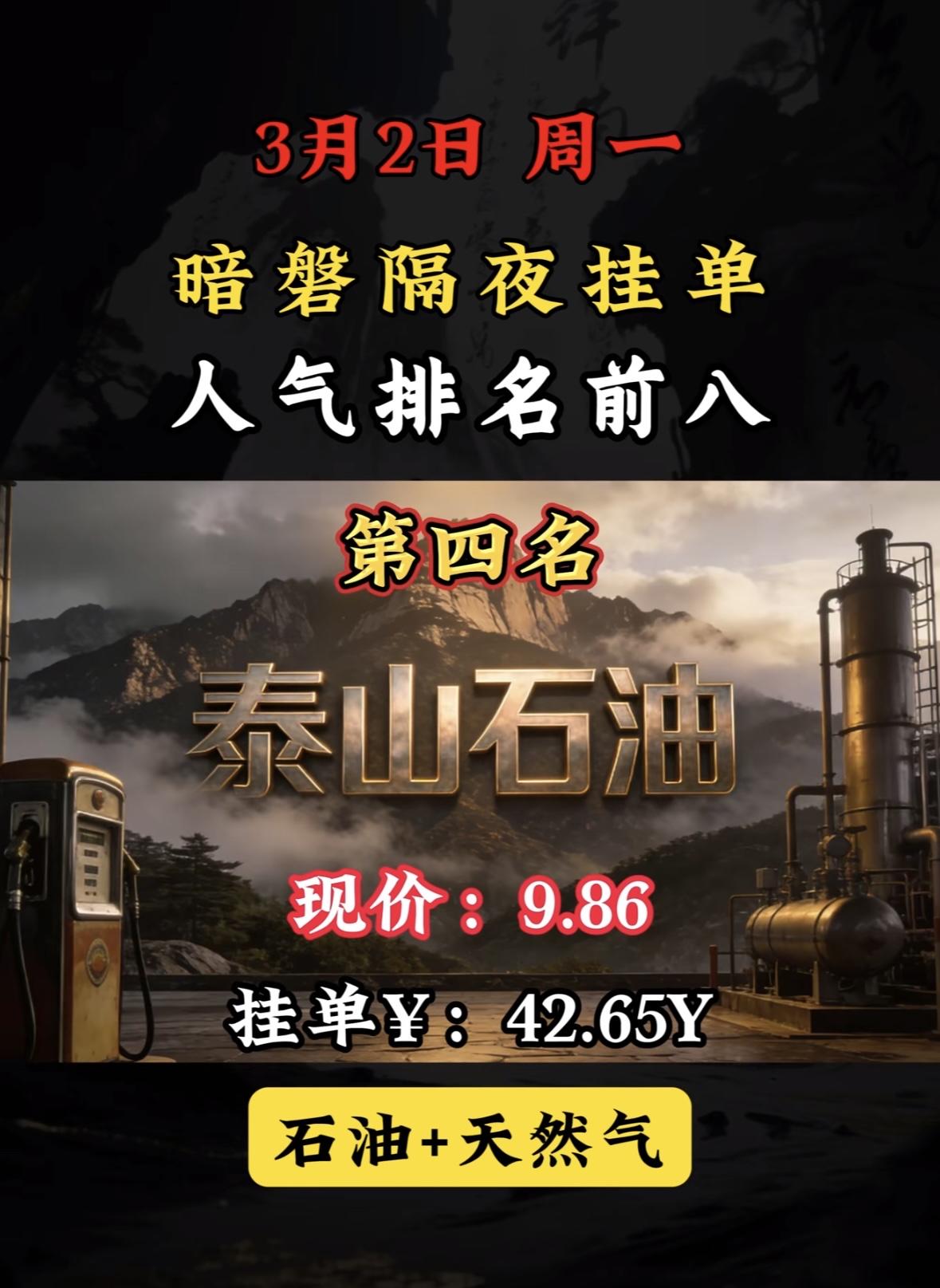 3月3日暗盘隔夜挂单前8名个股梳理。 "洲际油气登顶暗盘人气榜首,天然气板块受热捧,现价吸引资金关注。"