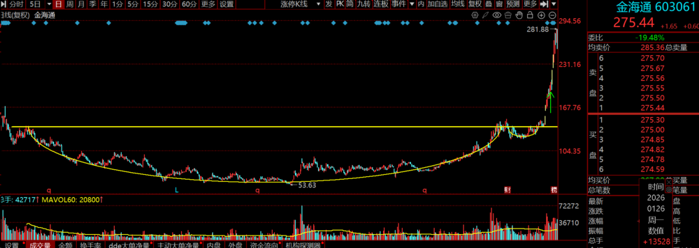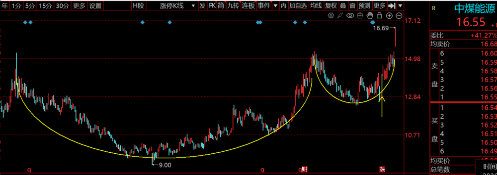 圆弧底形态的关键的是“缓慢”——没有剧烈的反弹或下跌,走势平滑,体现了市场情绪从恐慌下跌到逐步企稳、再到乐观回升的缓慢转变,适合中长期布局。