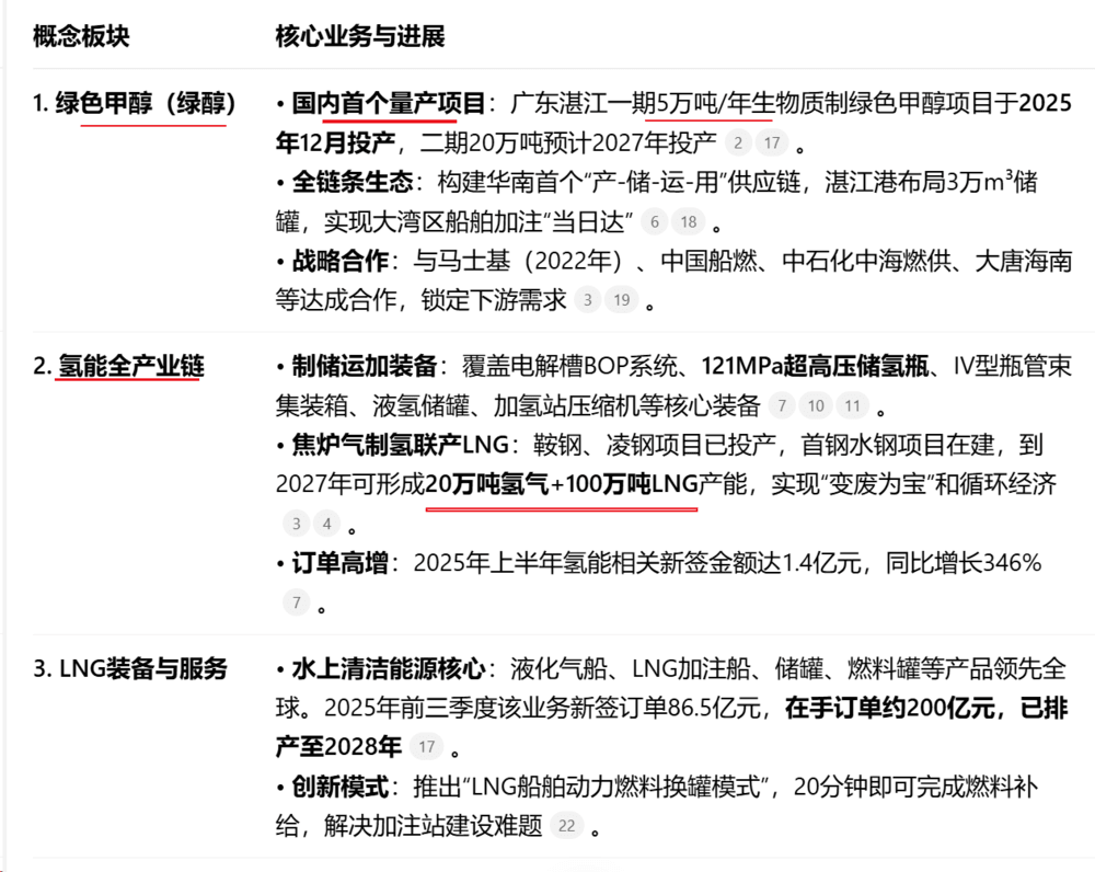 “天然气-氢能-绿色甲醇”业务在技术、客户和基础设施上高度协同。例如,LNG船建造能力可延伸至甲醇、氨燃料船;加注网络可共享;氢能装备为绿醇提供原料保障。