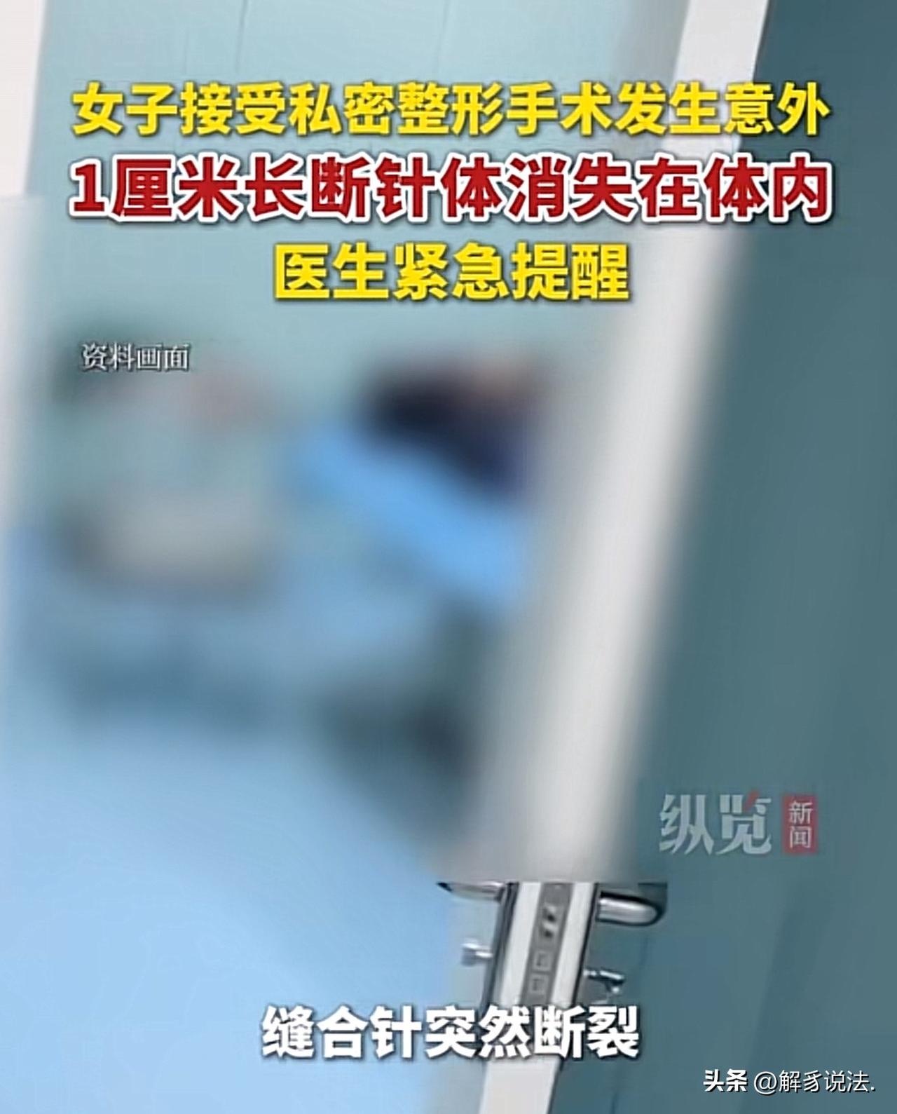 “替她捏了一把汗!”浙江,一女子生完孩子后,担心被丈夫嫌弃,于是,到一家私立美容机构,做阴道紧缩手术,却没想到,在缝合环节时,缝合针突然断裂,一截大约1厘米长的针体,瞬间消失得无影无踪,操作人员慌了神,女子吓得不轻。好在,操作人员及时意识到问题的严重性,赶紧推荐她去一家正规医院。随后,正轨医院是这样处理的…… 当了妈妈,本是一件幸福又骄傲的事,可很多女性在生完孩子后,都会遇到难以启齿的身体变化,30多岁的陈女士就是其中之一。 看着镜子里的自己,再加上产后私密部位松弛带来的不适感,也让她在面对丈夫时越来越不自信。 尽管丈夫总是安慰她,但越是这样她就越觉得莫名的委屈,认为丈夫就是嫌弃自己了。 不安和自卑侵蚀着她,她决定要改变,重回之前的状态。 半个月前,她走进了一家私立美容机构,做阴道紧缩手术,却没想到,意外发生了。 陈女士躺在手术床上,满心想着,做完手术就能摆脱产后的烦恼,重拾自信。 可就在手术进行到缝合环节时,意外突然发生。 医生手中的缝合针毫无征兆地断裂,一截大约1厘米长的针体,瞬间消失在了私密部位的软组织深处,连影子都找不到了。 那一刻,陈女士的大脑一片空白,恐惧从脚底直冲头顶,她浑身僵硬,心跳快得快要炸开,眼泪控制不住地往下掉。 她能清晰地感觉到身体里多了一个异物,却不知道它藏在哪里、会不会划伤器官、会不会留下终身后遗症,无边的恐慌把她彻底淹没。 现场的操作人员也慌了神,反复在伤口处探查、寻找,折腾了好一阵子,可那枚小小的断针就像人间蒸发了一样,始终没有踪迹,操作人员最后也只能束手无策,看着陈女士痛苦又害怕的样子,毫无解决办法。 时间一分一秒的过去,操作人员急得额头上布满了冷汗,意识到再折腾也是徒劳,危险会一步步靠近。 对方赶紧引荐陈女士去浙江省人民医院求助。 陈女士不敢耽搁,在家人的陪伴下,第一时间来到了浙江省人民医院。 接诊的医生看到陈女士惊慌失措的样子,一边安抚她的情绪,一边立刻展开检查。 凭借专业的设备和精湛的技术,医生很快定位到了断针的位置,小心翼翼地进行微创操作,仅仅用了20分钟,就将这枚藏在体内的1厘米断针完整取了出来。 直到断针被拿出的那一刻,陈女士悬在半空中的心才终于落地,紧绷了许久的身体瞬间放松下来,积压已久的情绪也终于得以释放。 针对这起意外,医生提醒,女性私密部位结构特殊,紧邻直肠、尿道,手术必须做到毫米级精准,稍有偏差就可能造成严重伤害。 一定要选择正规医疗机构,非正规机构无资质、无技术、无应急能力,一旦出现断针、出血、感染等意外,很难妥善处理,最终受害的是求美者自己。 这事一出,网友都替她捏了一把汗: 这断针扎在肉里得多疼啊,看着她那慌劲儿估计已经受不了了。好在跑得快,赶紧让医生治治,这事儿可得麻溜点办,别把病人折腾坏了。 吓得我手心都出汗了,这得有多慌啊。敢问这位大姐,这截断针是咋进去的?赶紧弄出来才是正经事,那地方又深又敏感,这疼简直没法形容,太不容易了。 《刑法》第336条:未取得医生执业资格的人非法行医,情节严重的,处三年以下有期徒刑、拘役或者管制,并处或者单处罚金;严重损害就诊人身体健康的,处三年以上十年以下有期徒刑,并处罚金。 本案中,涉事私立机构若未取得《医疗机构执业许可证》、操作人员无医师执业资格,即属于非法行医。 术中断针并导致异物残留体内,已对陈女士身体健康造成实质风险与损害,符合“情节严重”的认定标准,机构与责任人不仅要承担民事赔偿,还可能面临行政处罚,情节恶劣、后果严重的,将被追究刑事责任。 陈女士的经历也给所有女性敲响了警钟:爱美之心人皆有之,但健康永远是第一位的。 无论是私密整形还是其他医美项目,一定要擦亮眼睛,选择资质齐全、医生专业、设备完善的正规医疗机构,别让追求美丽的心愿,变成伤害自己的噩梦。 欢迎关注@解豸说法.